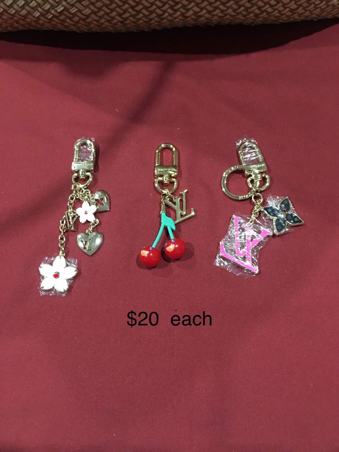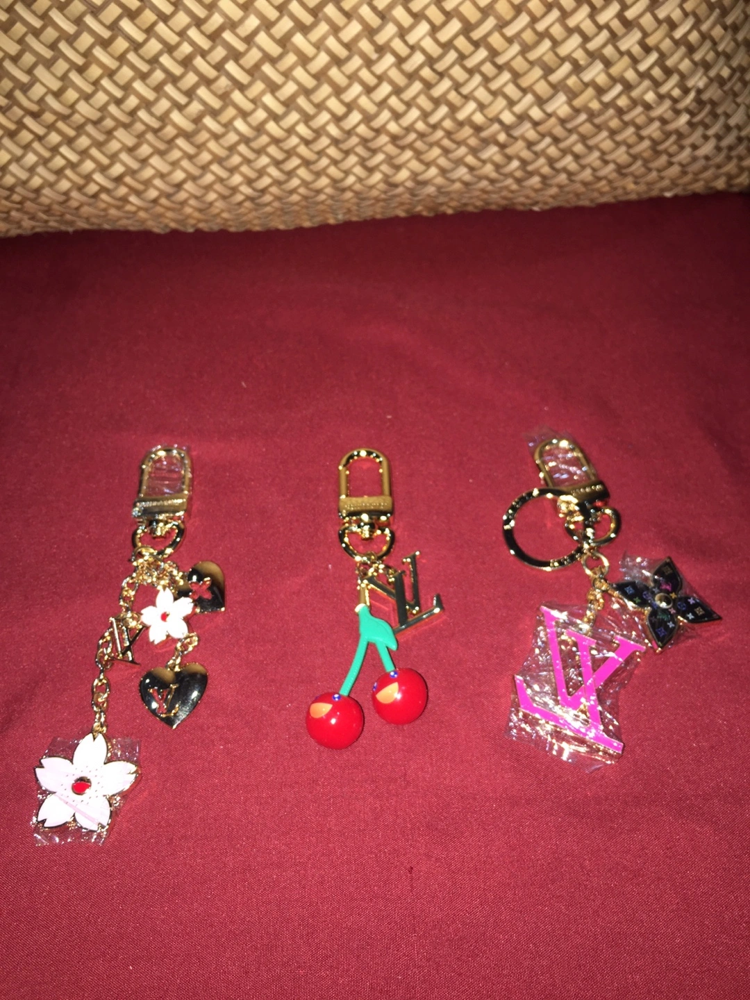 Charm Keychains - Flower, Cherries, and LV Monogram