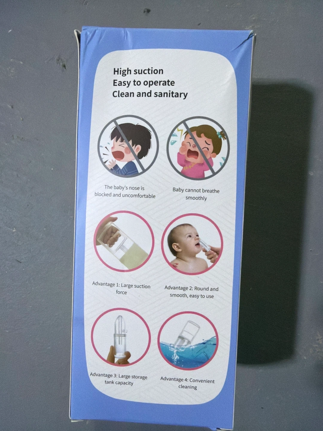 This baby nasal aspirator is suitable for babies. It's easy to use and quiet. It features high suction power and a large storage tank capacity. Cleaning is convenient.