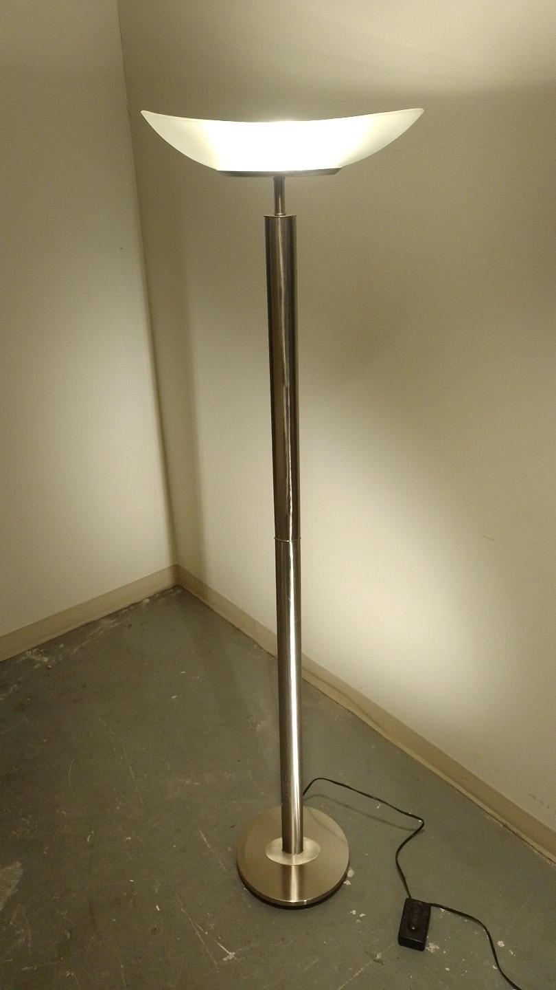 Modern Stained Glass & Chrome Floor Lamp w. Dimmer