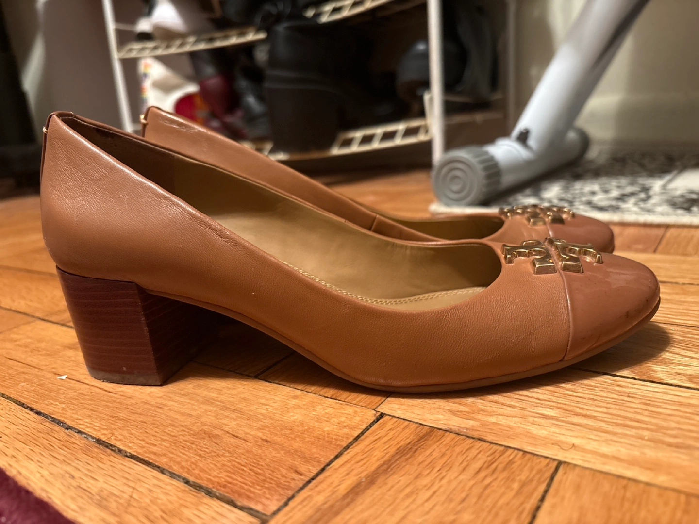 Tory Burch Brown Leather Block Heel Pumps - Size 7.5