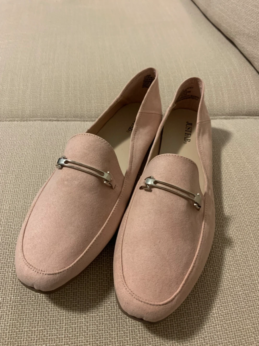 Selling a pair of loafers in a lovely pink colour! They are a size 9.5 US and made with faux suede soft material. These stylish shoes are perfect for adding a touch of elegance to any outfit.