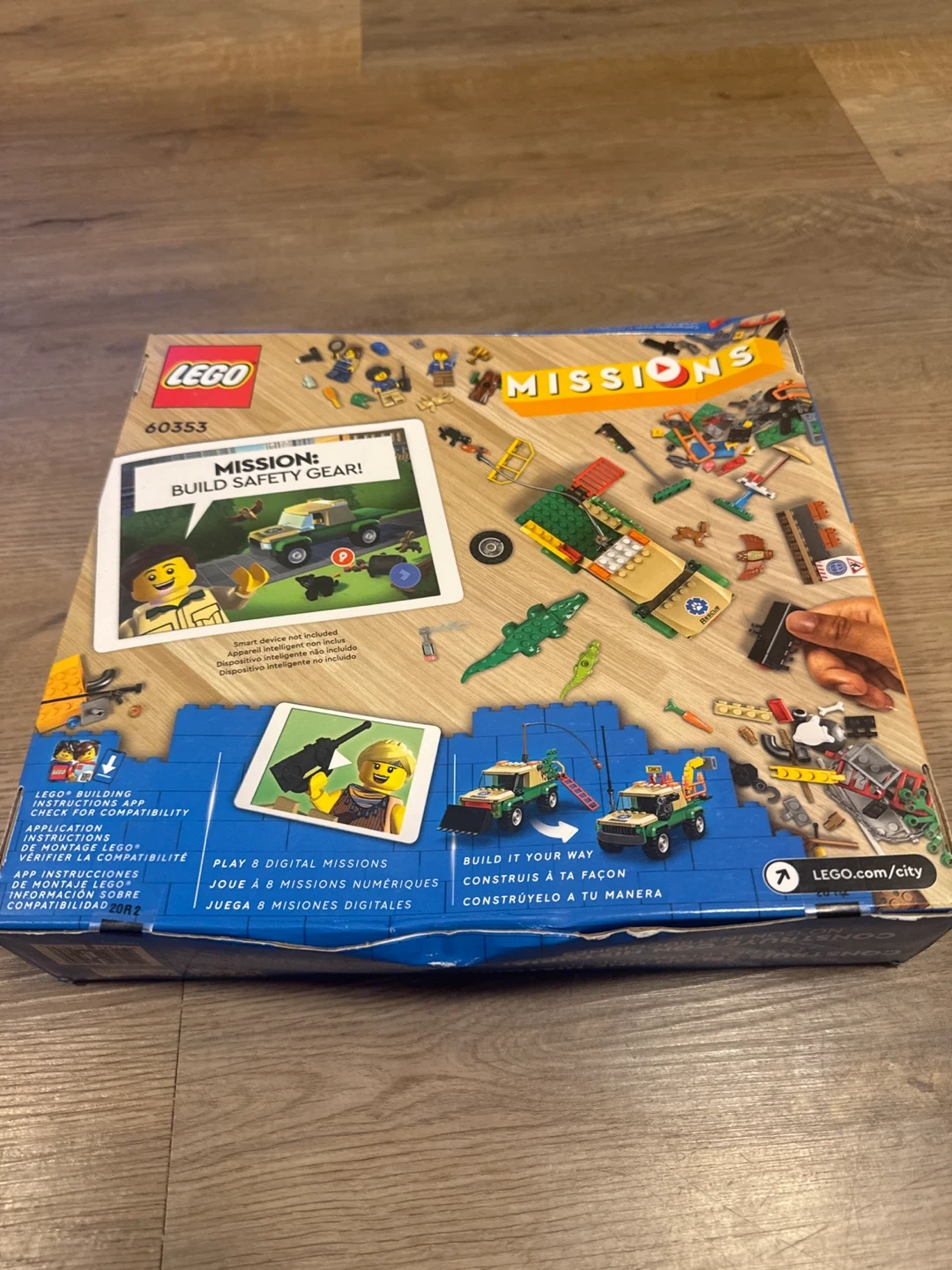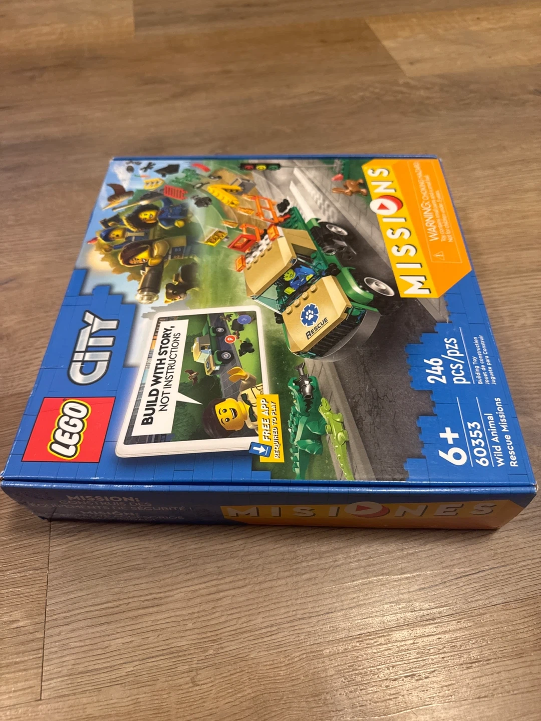 This is the LEGO City Missions Wild Animal Rescue set, number 60353. It includes 246 pieces and is recommended for ages 6+. Build with story, not instructions, using the free app to play digital missions.
