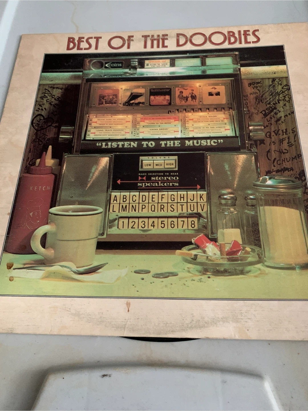 This is the Best of The Doobies vinyl record. It features "Listen to the Music" and "Black Water" among other hits. This is a great addition to any music lover's collection!