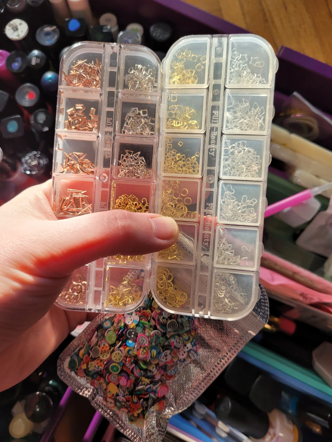 large purple drawers not included, but I can include the smaller zip bag and the pastel organizers from the accessories drawer if you want!