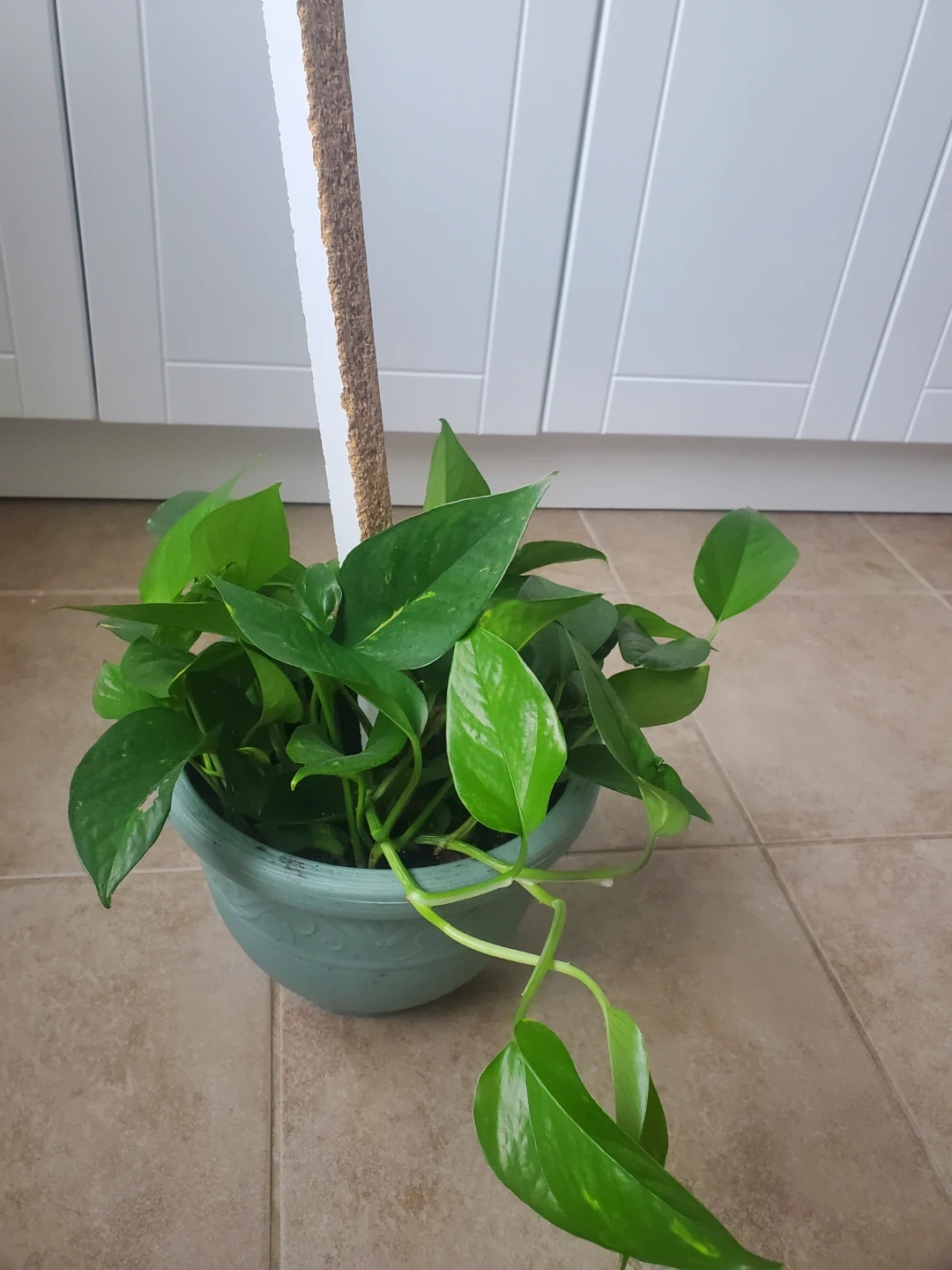 Selling a healthy Pothos plant in a lovely pot! It comes with a climbing pole to encourage vertical growth. Perfect for adding some greenery to your home