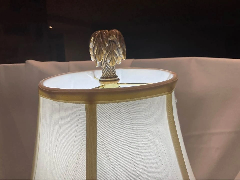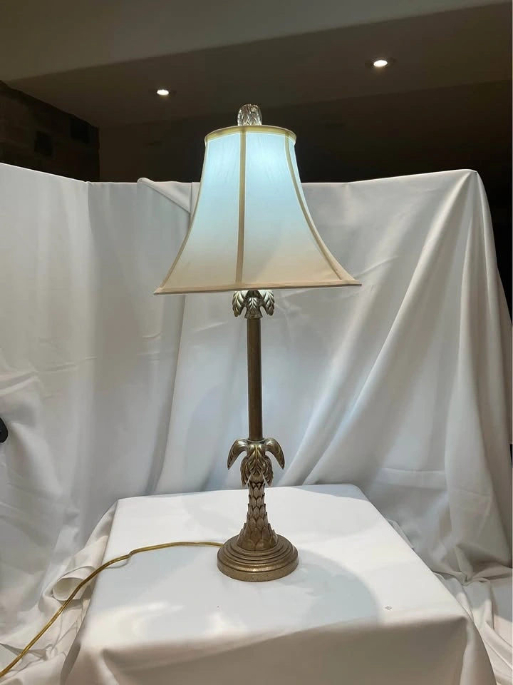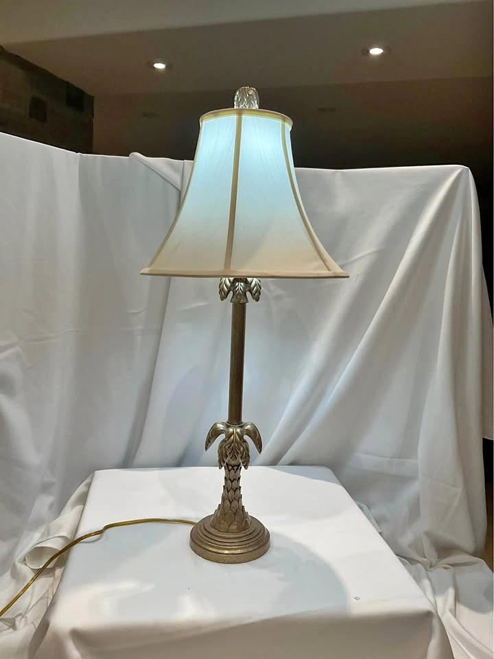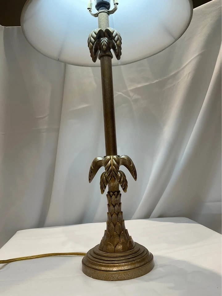 Beautiful Vintage Hollywood Regency Palm Style Lamp with original finial. Height 32” with finial. This is a heavy lamp. Smoke & Pet Free Home. Located in Richmond Hill (Bathurst & King Rd).
