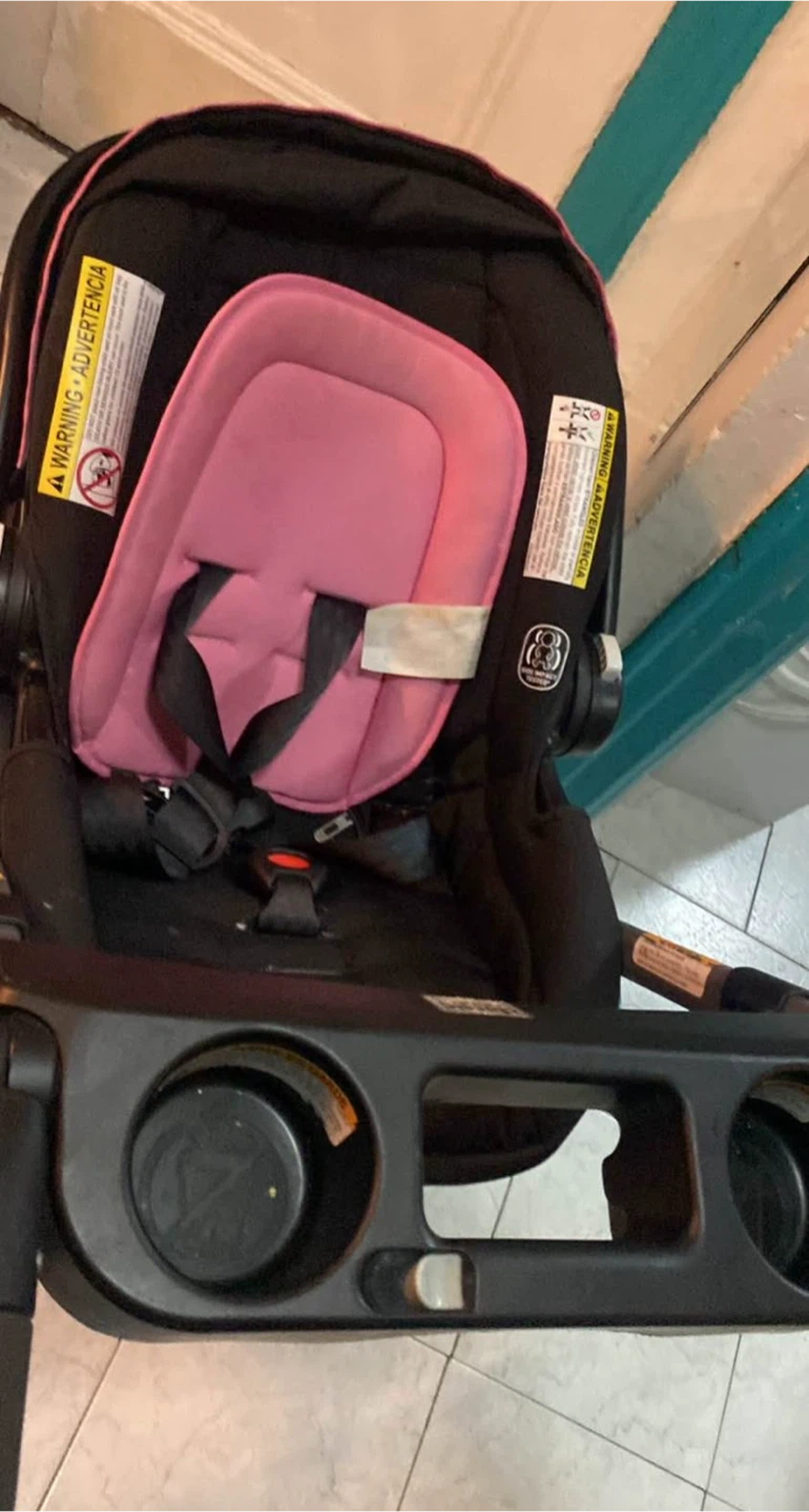 Selling a used Graco stroller in black and pink. It's in good condition and ready for a new family. Perfect for walks in the park or trips to the store!