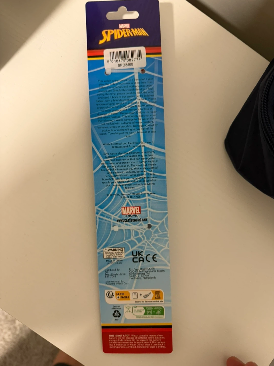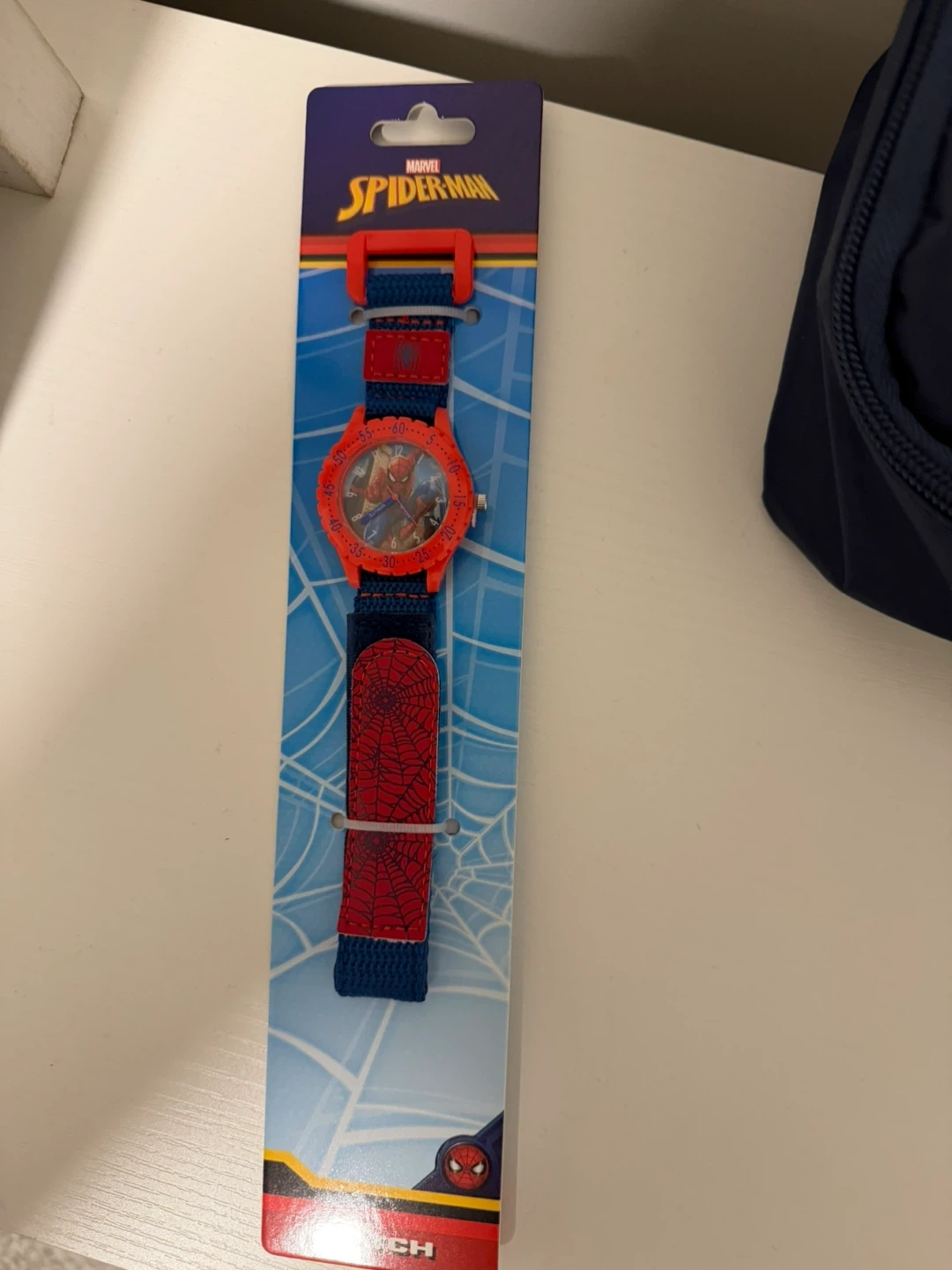 Fun Marvel Spider-Man watch for kids. It features a red and blue strap with a Spider-Man graphic. Perfect for helping little ones learn to tell time!