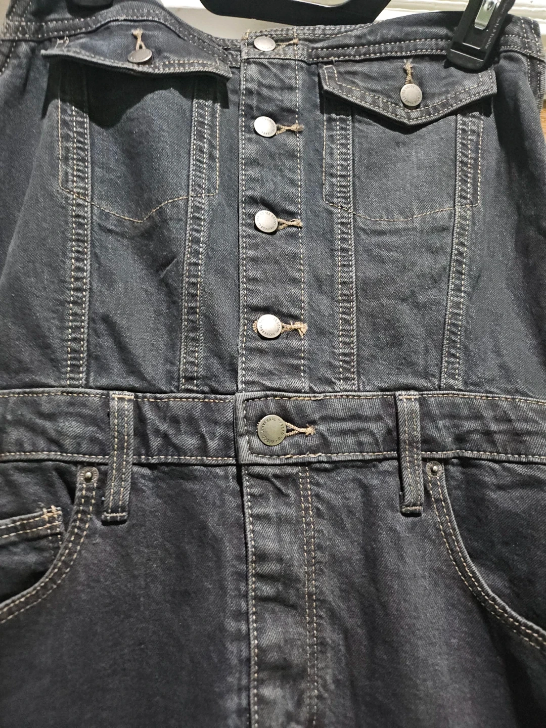 This is a Universal Thread denim midi dress. It's black and has a classic overall style. Size 8.