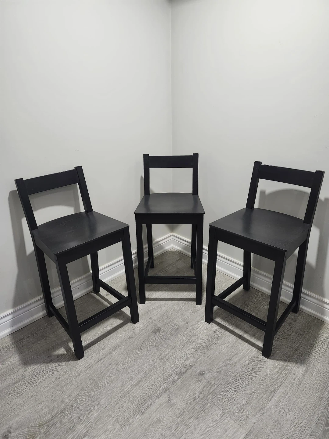 Black Wooden Bar Stools with Cushions (3)