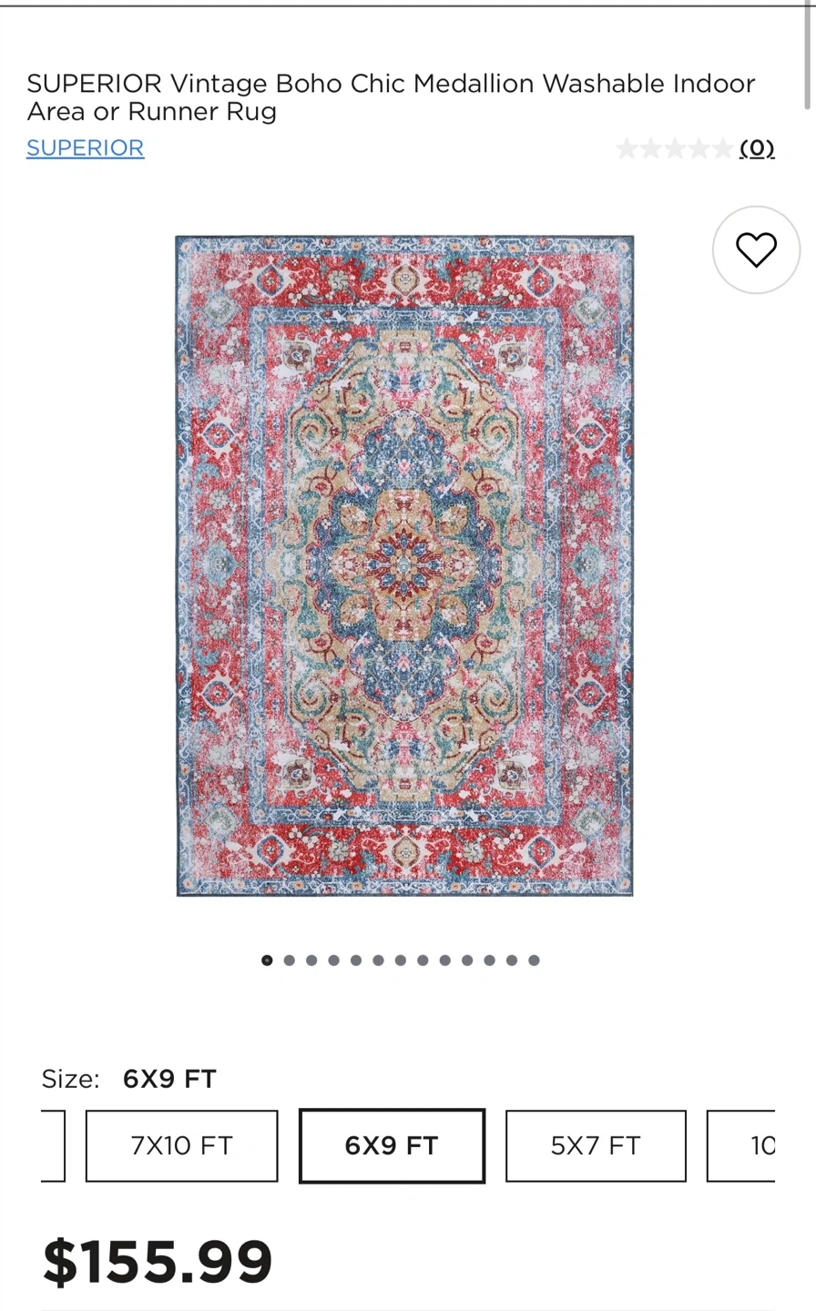 Buy & SellSUPERIOR Vintage Boho Chic Medallion 6x9SUPERIOR Vintage Boho Chic Medallion 6x9$117This is a SUPERIOR brand Vintage Boho Chic Medallion Washable Indoor Area or Runner Rug. It's made in Egypt with 100% polyester. It's a 6x9 FT size.ConditionNewWHERE TO MEETCheck LocationView MapSELLERverifiedKarla GRomeoville751 review0 chats·1 favorites·19 viewsSEND CHAT TO SELLERHi Karla G! I’m interested in your listing.Hi Karla G! I’m interested in your listing.Get the Karrot app to chatSign In to chat