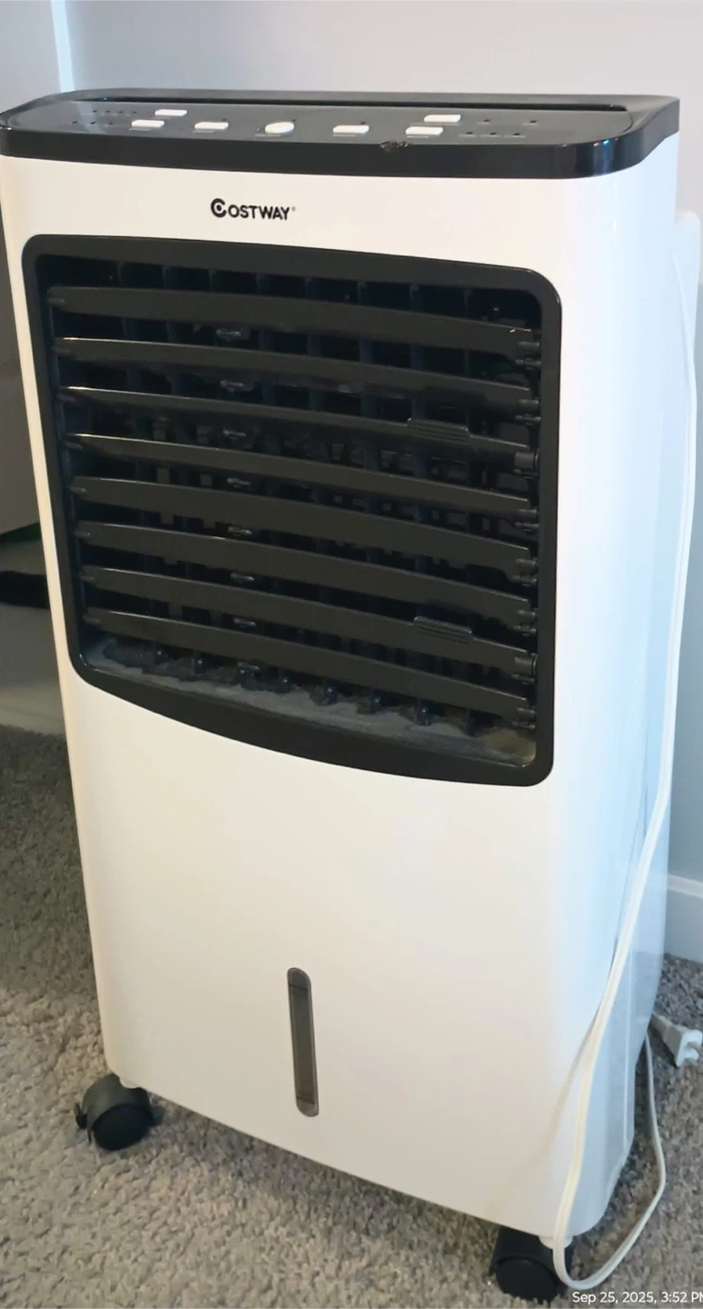 Keep cool with this COSTWAY portable air cooler! It's perfect for those hot summer days. It has a sleek design and is easy to move around with its built-in wheels