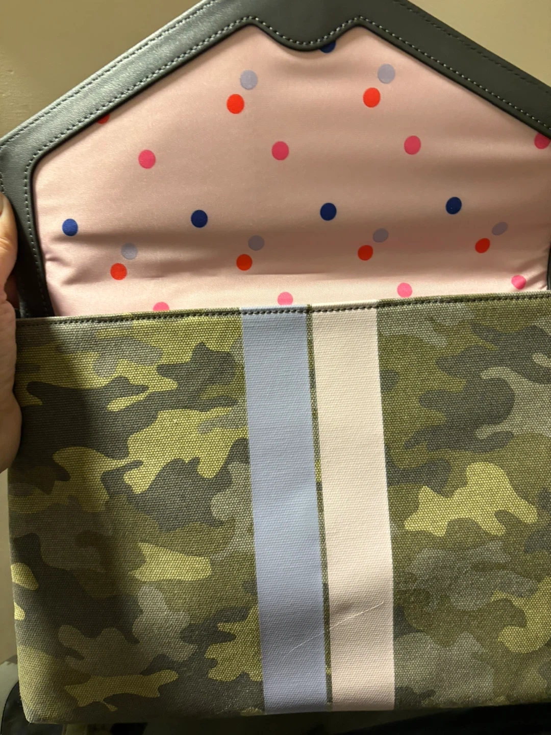 Stella & Dot Bellamy Camouflage Clutch Purse with Pastel Stripes