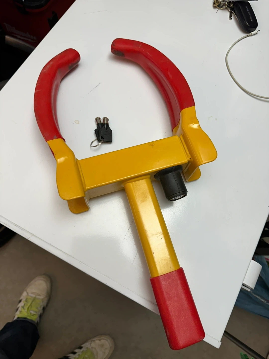 Buy & SellYellow and Red Wheel Clamp Lock with 2 KeysYellow and Red Wheel Clamp Lock with 2 Keys$45This is a heavy-duty wheel clamp lock designed to secure vehicles. It's made of sturdy metal construction. Includes two keys for operation.ConditionNewWHERE TO MEETStouffville ArenaView MapSELLERverifiedYanyanBallantrae1114 reviews0 chats·1 favorites·7 viewsSEND CHAT TO SELLERHi Yanyan! I’m interested in your listing.Hi Yanyan! I’m interested in your listing.Get the Karrot app to chatSign In to chat
