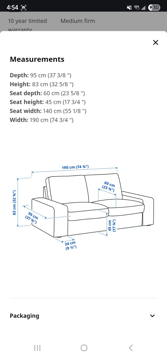 - Width: 190 cm (74 3/4 ")