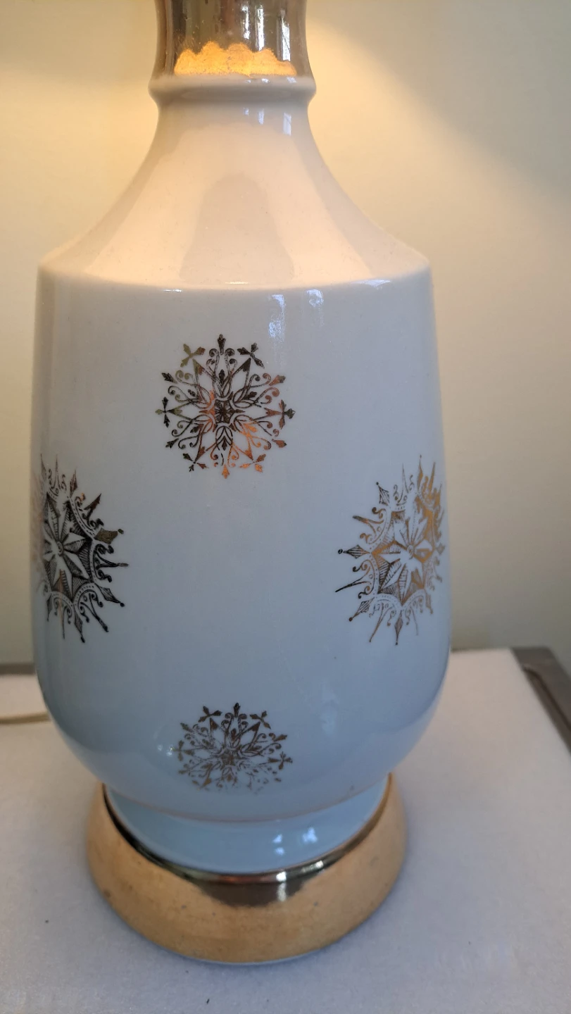 Vintage Ceramic Lamp with Gold Snowflake Design