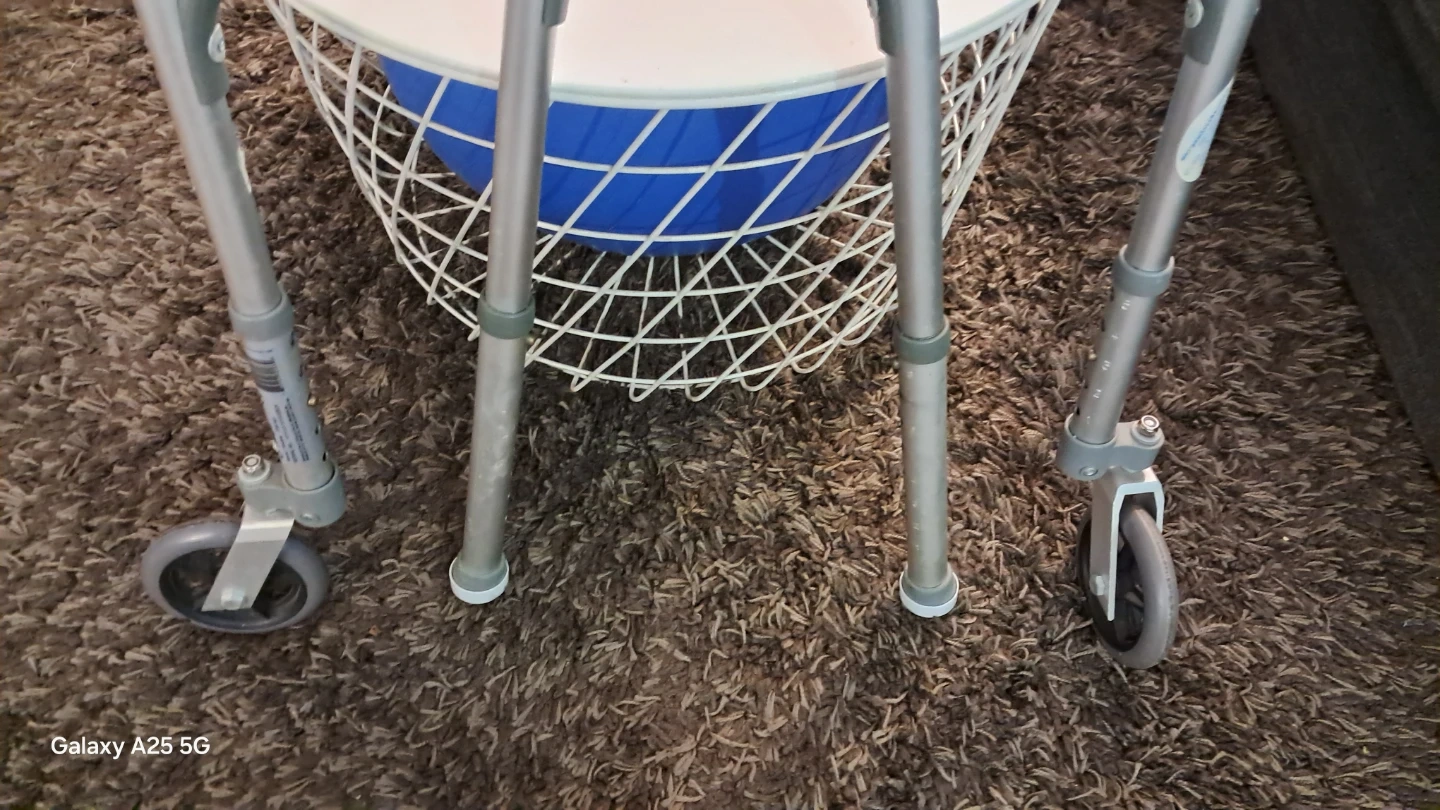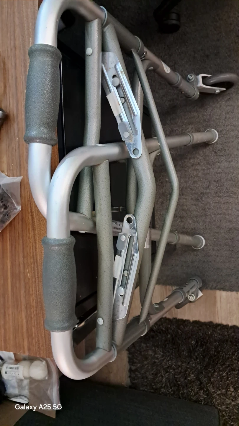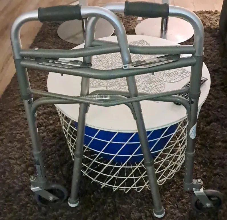 This Lumex walker features a foldable design for easy storage and transport. It comes with wheels on the front legs for smoother gliding. Aluminum construction.