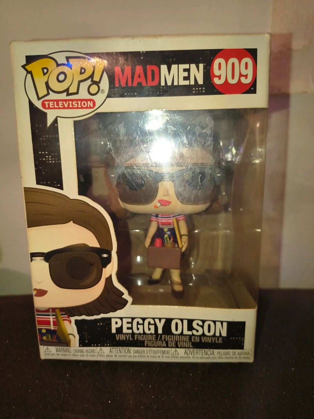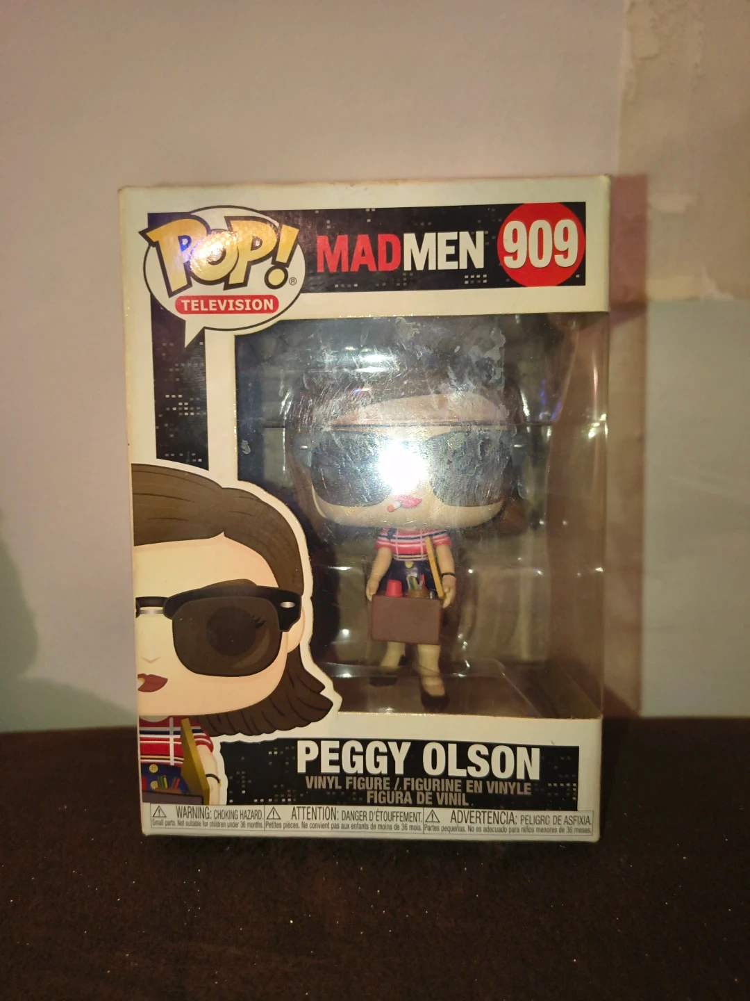 This is a Funko Pop! vinyl figure of Peggy Olson from Mad Men, number 909. It's in its original packaging. This collectible is great for fans of the show.