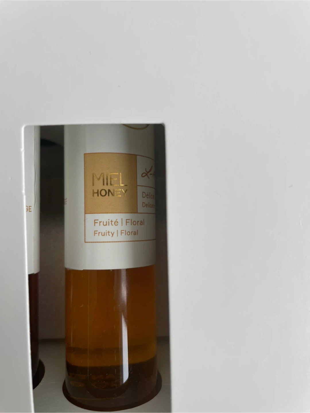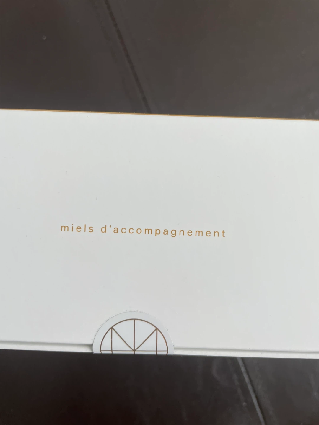 Selling a Liaison Ensemble Dégustation Tasting Set. This set includes a wooden display and a selection of honey. The box states "A link between two worlds is about to be created."