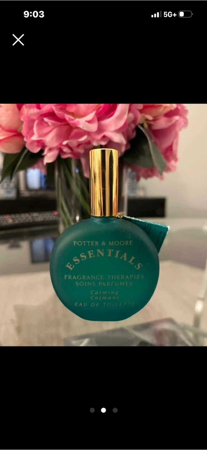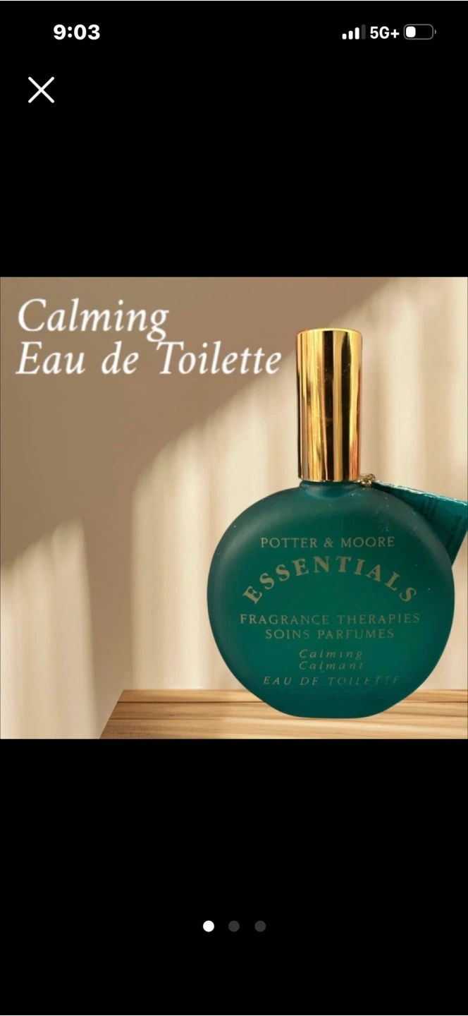 Selling a bottle of Potter & Moore Essentials Calming Eau de Toilette. It's part of their fragrance therapies line, designed to relax and calm.