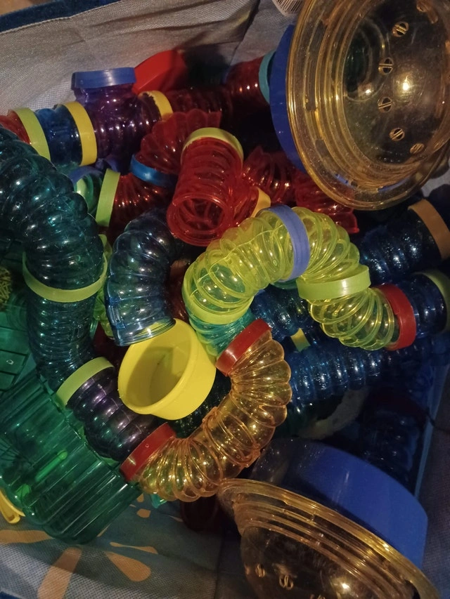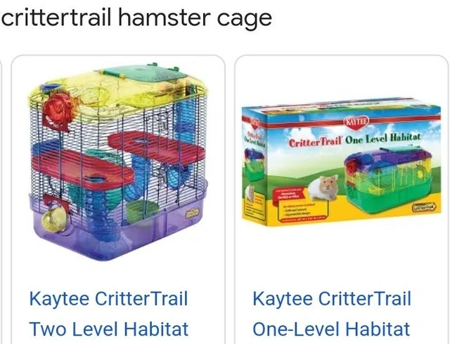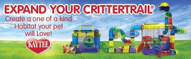 One Level Habitat and 2 Two-Level Habitats with tubes to connect them. Includes a petting zone, food dish and water bottle. Features a look-out tower, exterior exercise wheel and front access door. Connects to other CritterTrail habitats with CritterTrail Fun-nel accessories to create expanded living space. Narrow wire spacing ensures that your pet will remain safely and securely inside. Ideal habitat for a hamster, gerbil, mouse or other small animal. Cage Dimensions: 20" x 11.5" x 16". Bar Spacing: 1/4". Measures 16 x 1.5 x 16 inches.