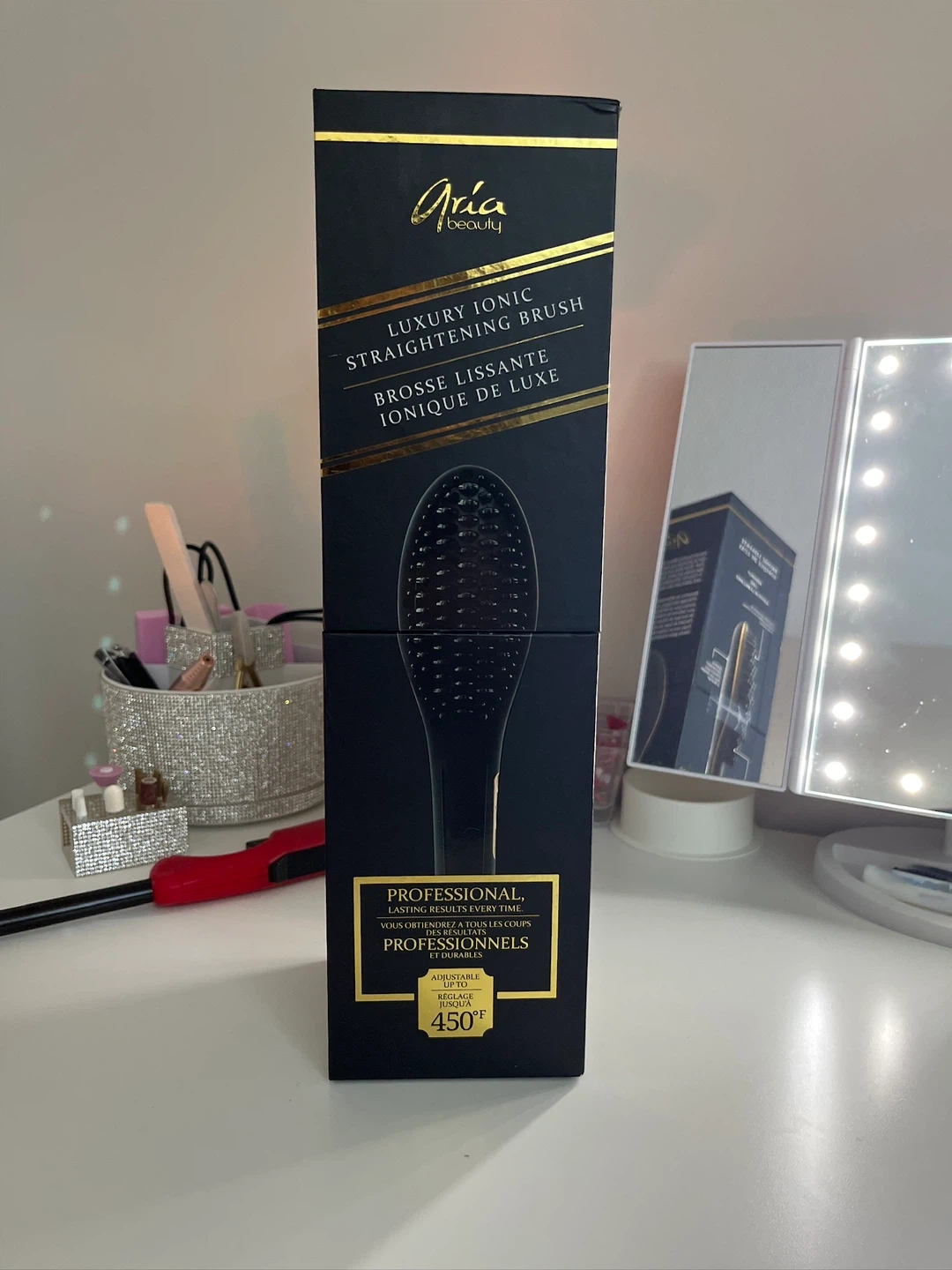 This Arda Beauty luxury ionic straightening brush delivers lasting results every time. It heats up to 450°F for professional salon-quality straightening. Straightens hair quickly for a smooth finish. Brand new!