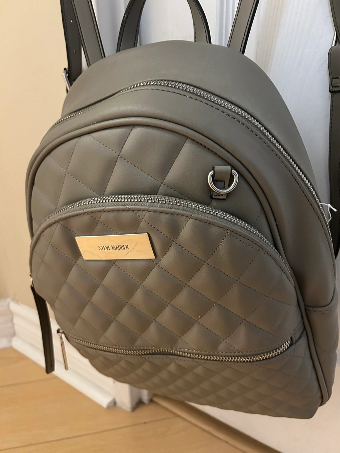 Selling a stylish Steve Madden backpack in a lovely gray colour! It's in great condition and ready for a new home. Perfect for everyday use or as a fashionable accessory