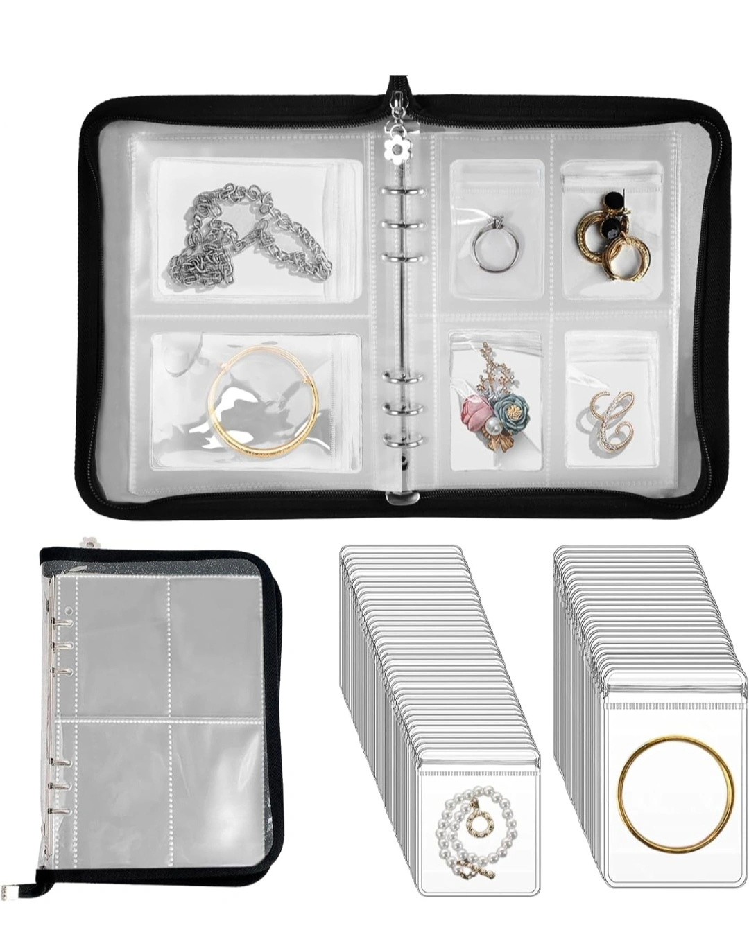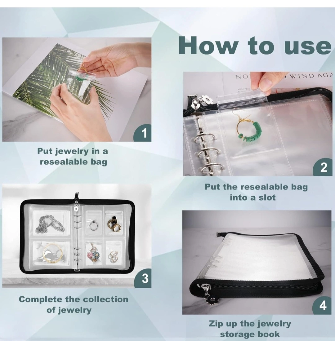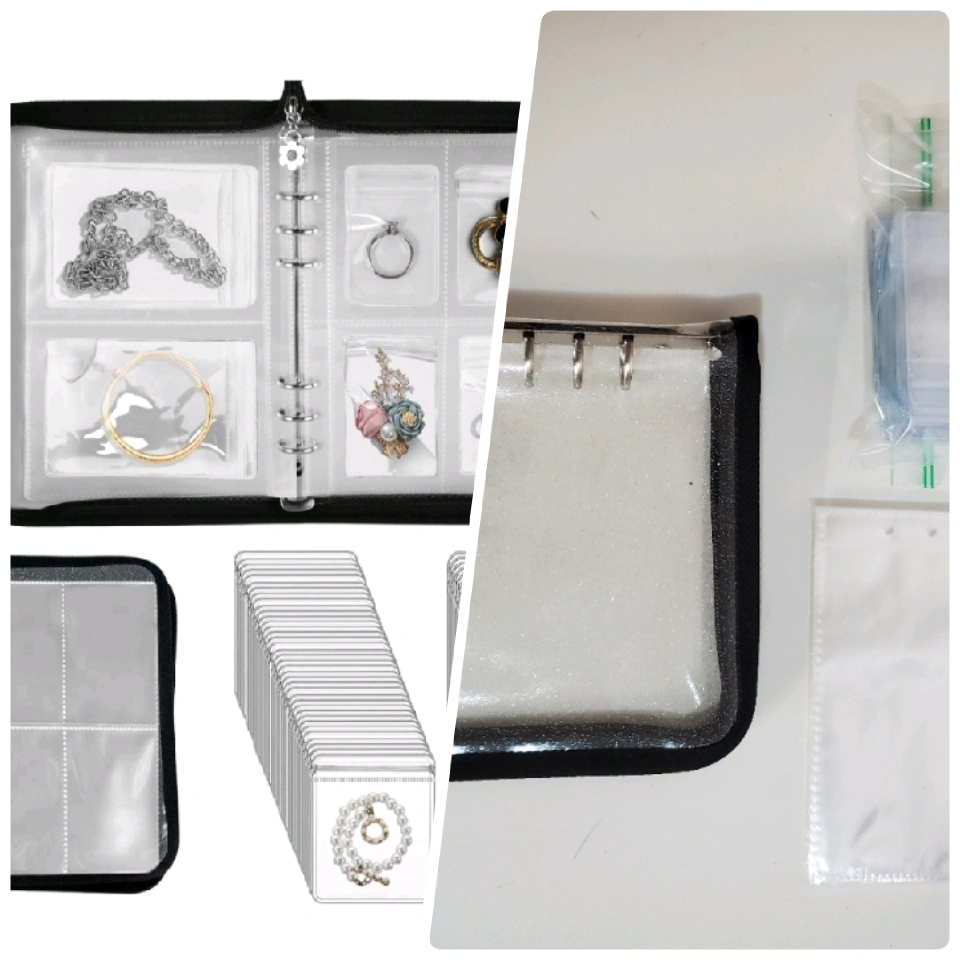Large capacity: This clear storage book has 120 card slots with 75 pcs clear jewelry storage bags to meet your daily use. (2 size card slots+2 size zipper lock bags) The clear jewelry album has metal binder rings making your jewelry to be stored and displayed easily and selecting jewelry easily like turning a book.