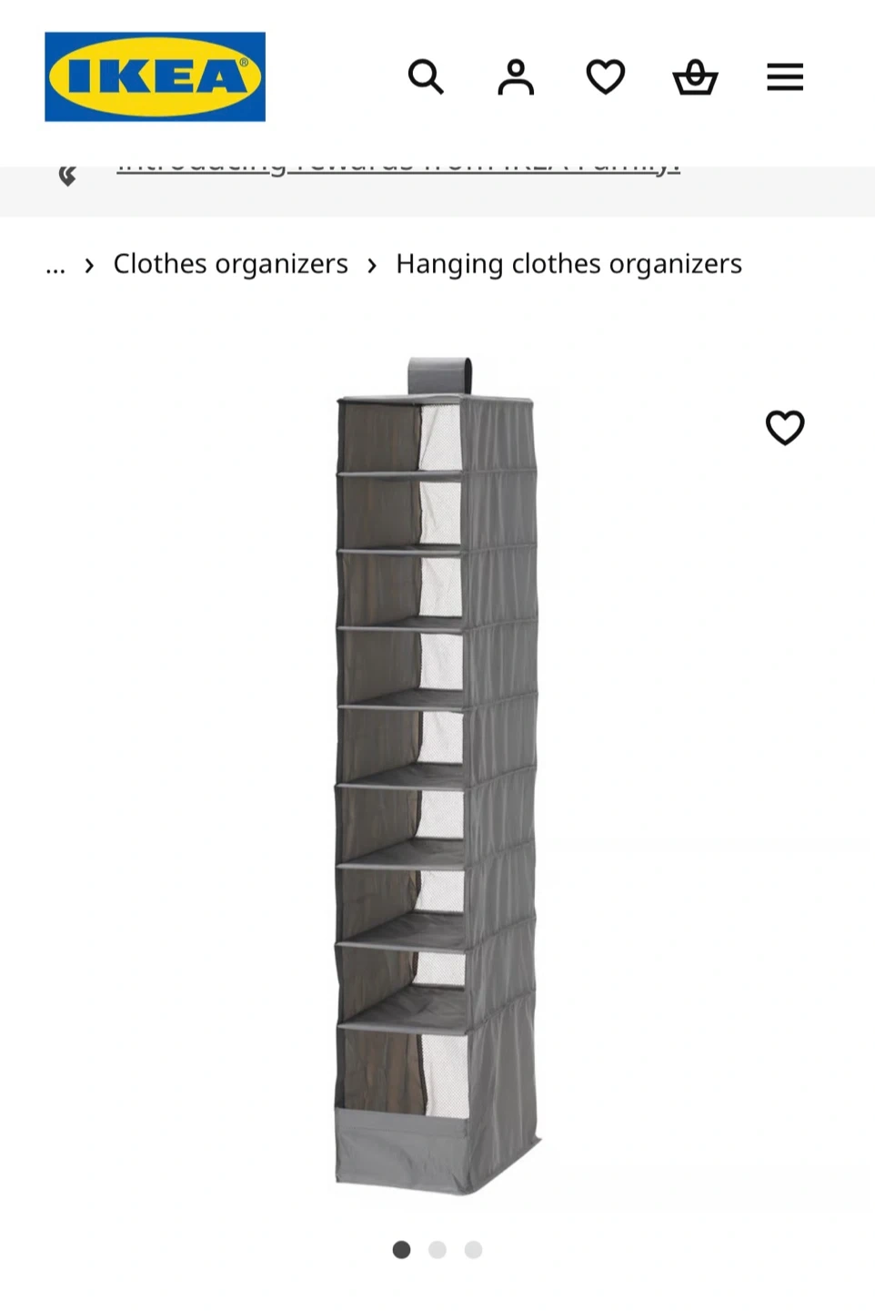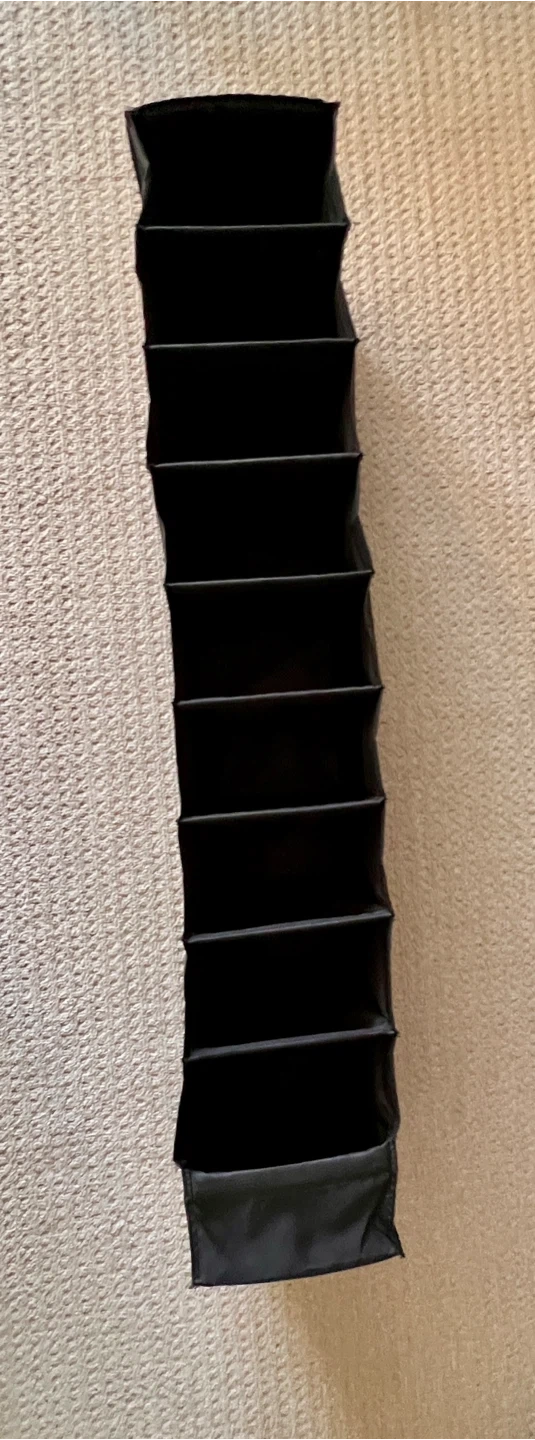 Keep your closet tidy with this handy IKEA SKUBB hanging organizer! It features 9 compartments to help you store clothes, shoes, or accessories. Dimensions are 22x34x120 cm). Made from 100% polyester, it's lightweight and easy to hang.