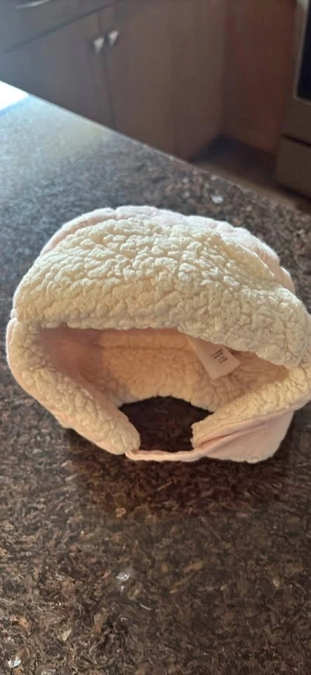 Pink fleece lined girls winter hat with ear coverings and adjustable Velcro strap. Excellent condition. Gently worn through one season. Located in St James.