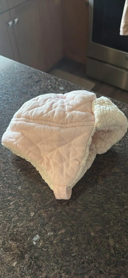 Pink fleece lined girls winter hat with ear coverings and adjustable Velcro strap. Excellent condition. Gently worn through one season. Located in St James.