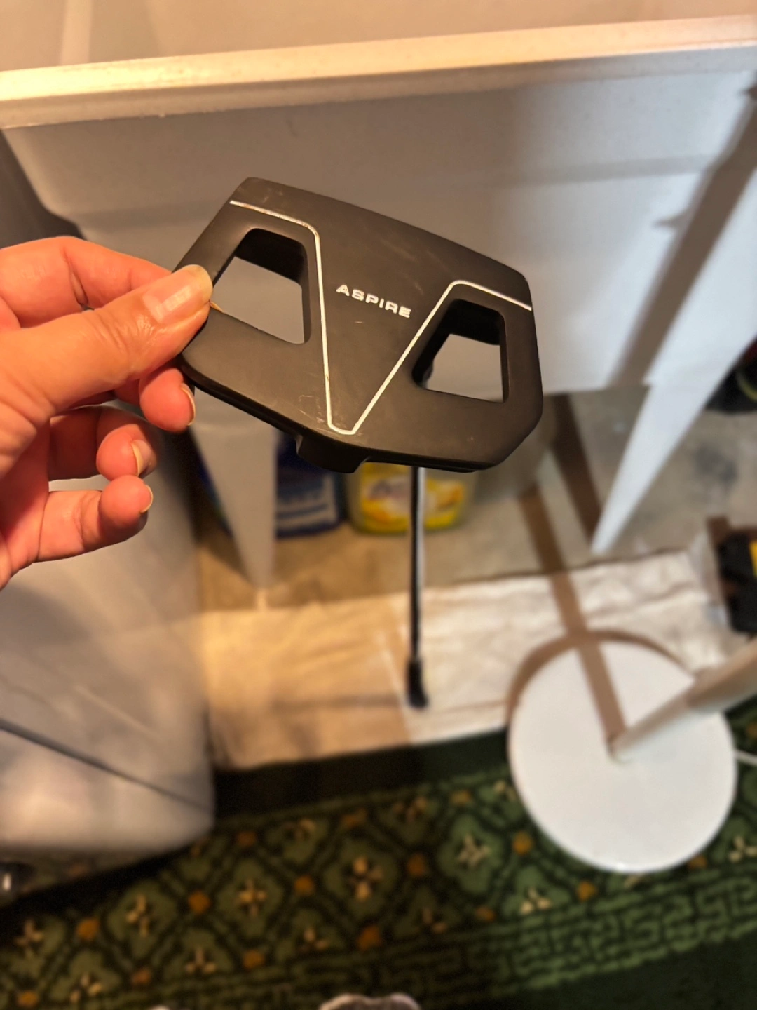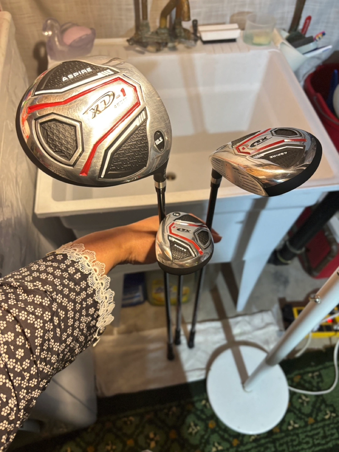 Complete set of golf clubs. Includes woods, irons, balls and putter. Aspire golf bag. Three golf balls included. Great condition.Never used.