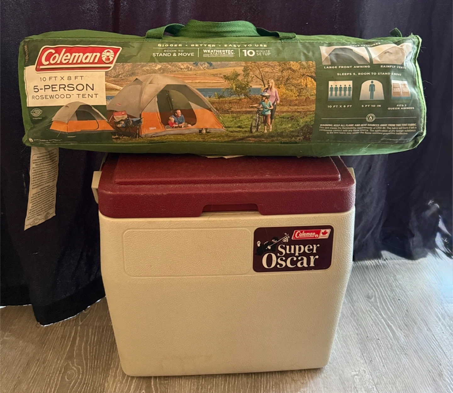 Selling a Coleman Rosewood 5-person tent! It's 10 ft x 8 ft, offering lots of room to stand and move. It also features a large front awning and rainfly vents for extra comfort and protection. Easy 10-minute setup!