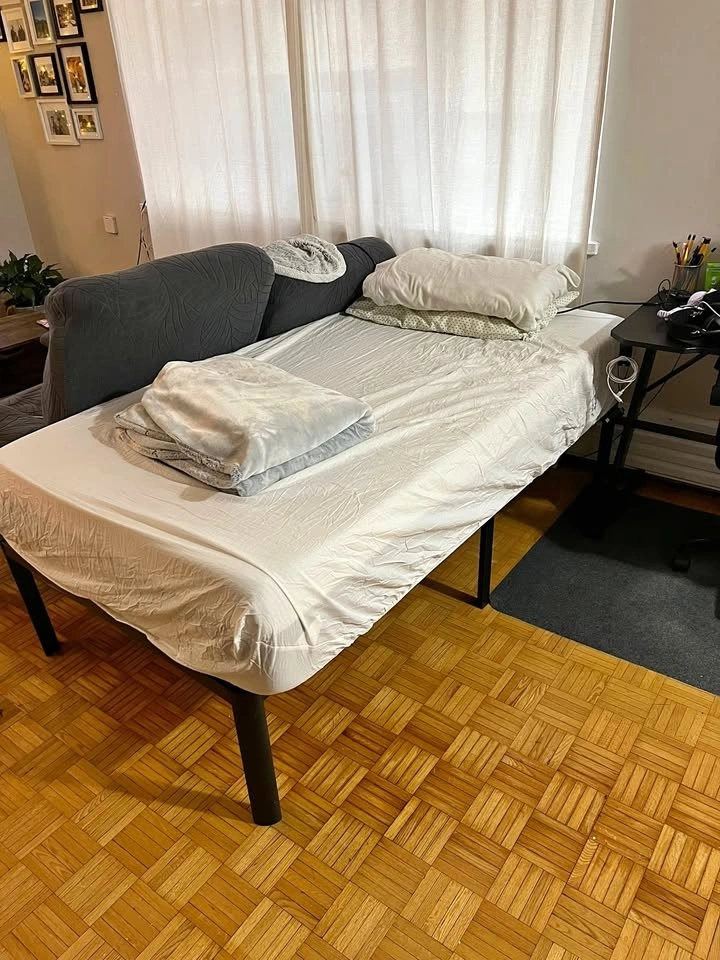 Single bed with frame and mattress included, in good condition. Clean and well maintained, comfortable mattress, sturdy bed frame, and ready for immediate use. Great for a bedroom, guest room, or student apartment. Selling due to moving. Pickup only – Downtown.