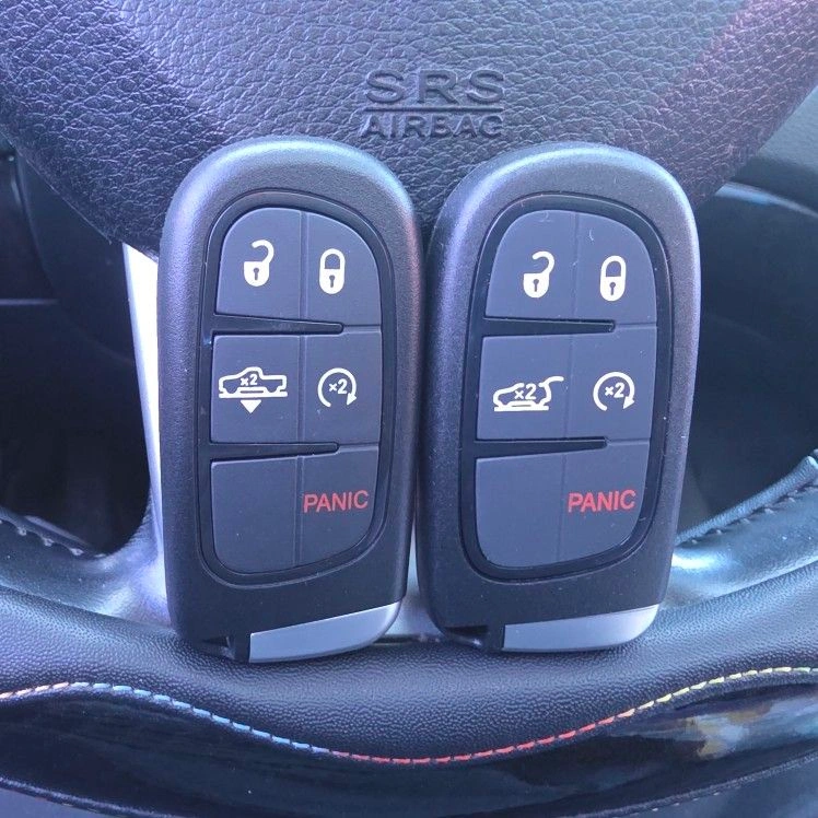 Smart Proximity Key Fob Remotes for Dodge, Jeep, Chrysler, Ram & Fiat. Available in Chicagoland. Send a message with your vehicle's year, make, model and location for a quote. Push-to-Start / Keyless Entry Compatible. 5 Buttons: Lock | Unlock | Panic | Remote Start | Power Liftgate/Tailgate*. Emergency key included. OEM-style replacement. Compatible Vehicles: Chrysler: 200 (2015–2017), 300 (2011–2023). Dodge: Charger (2011–2023), Challenger (2015–2023), Dart (2013–2016), Durango (2014–2026), Journey (2011–2020). Jeep: Grand Cherokee (2014–2022), Cherokee (2014–2023), Compass (2017–2025). Fiat: 500X (2015–2017). Feel free to message if you have any questions!