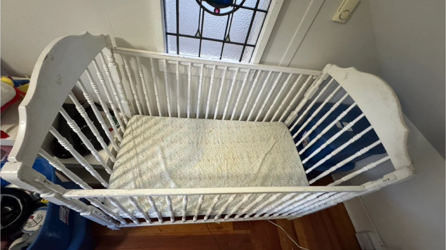 Selling a white wooden baby crib. It's in good condition and ready for a new little one! Perfect for creating a cozy and safe sleeping space for your baby