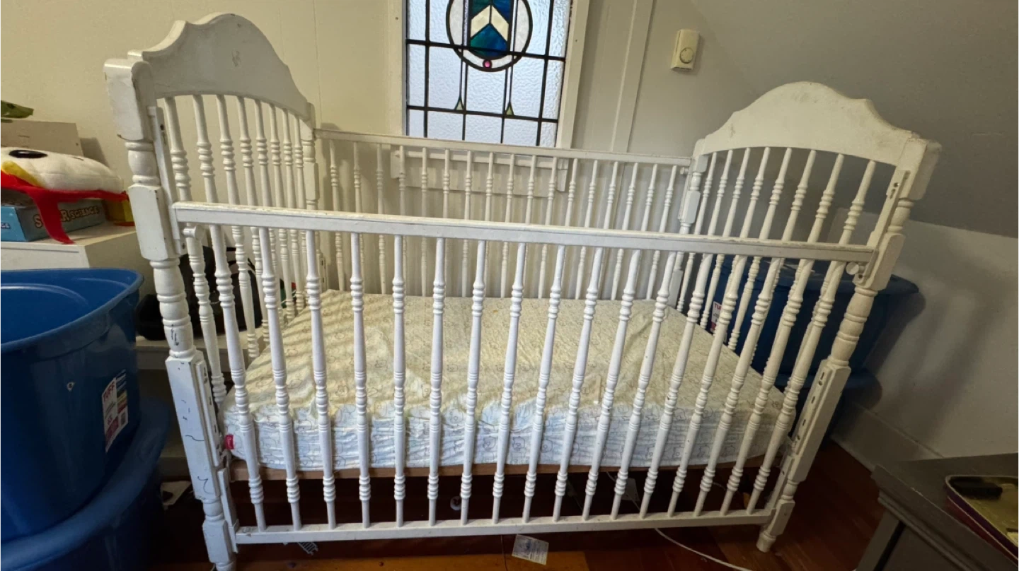 Selling a white wooden baby crib. It's in good condition and ready for a new little one! Perfect for creating a cozy and safe sleeping space for your baby