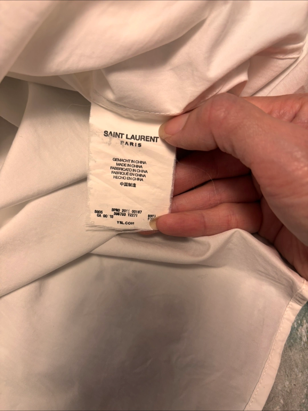 Selling a Saint Laurent button-down shirt in white. It's a classic slim fit piece that would look great in any wardrobe!