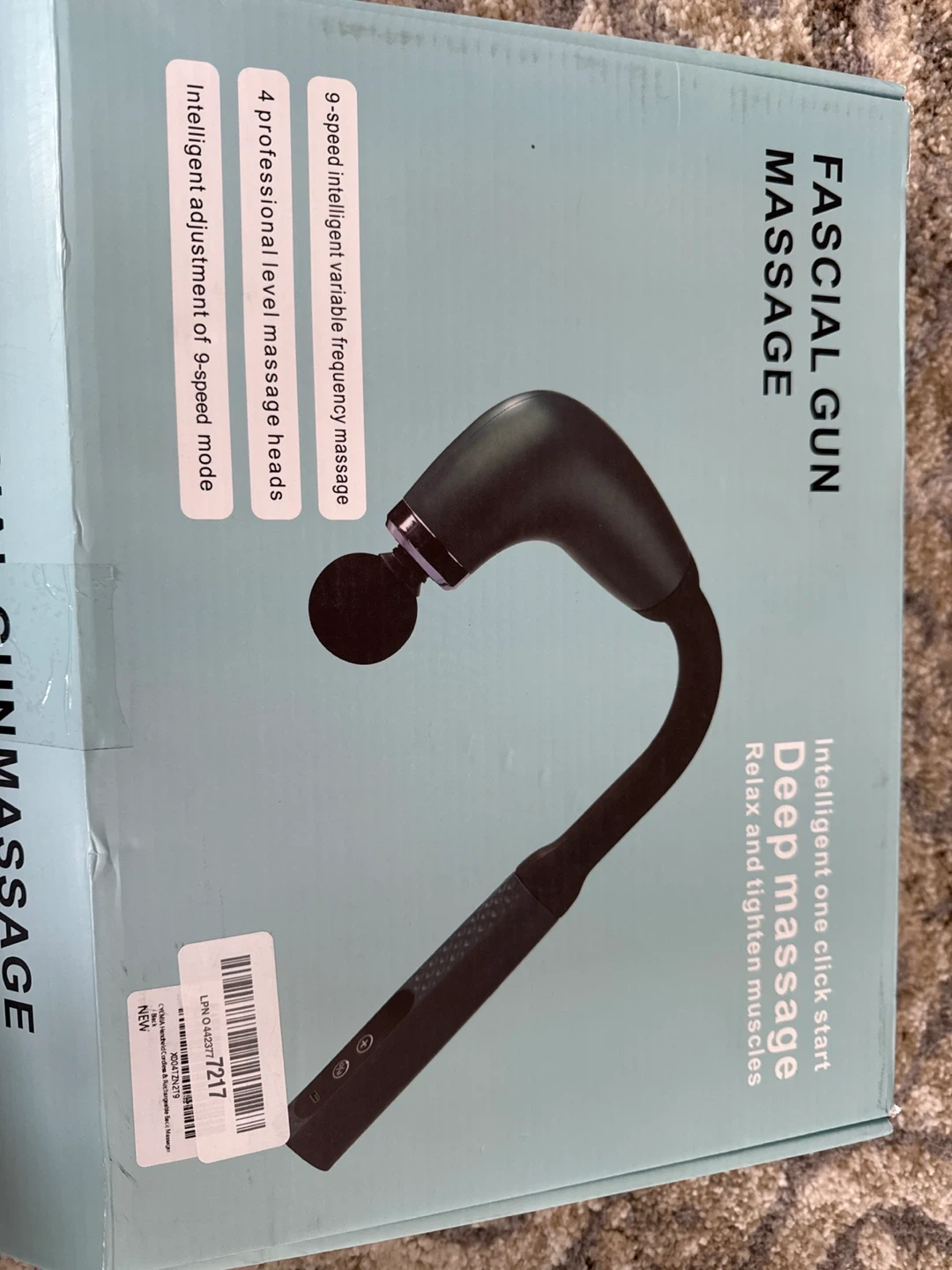This is a BACKPLUS full body massage hammer. It's designed with an ergonomic 120-degree curve for reaching tricky spots. It comes with 4 professional massage heads and offers 9-speed intelligent variable frequency massage.