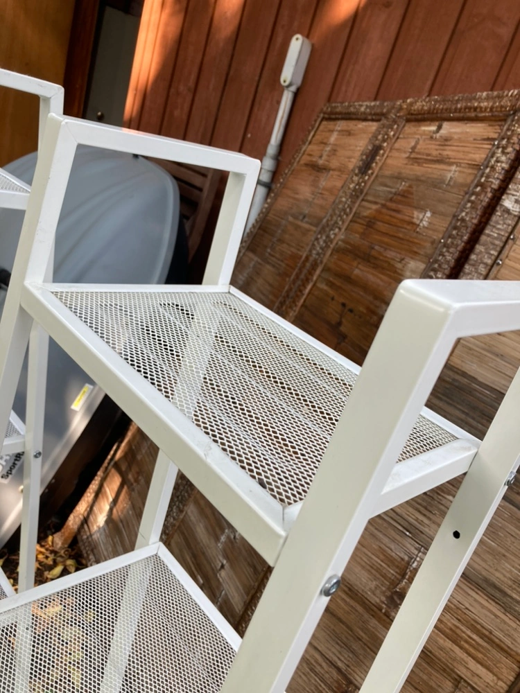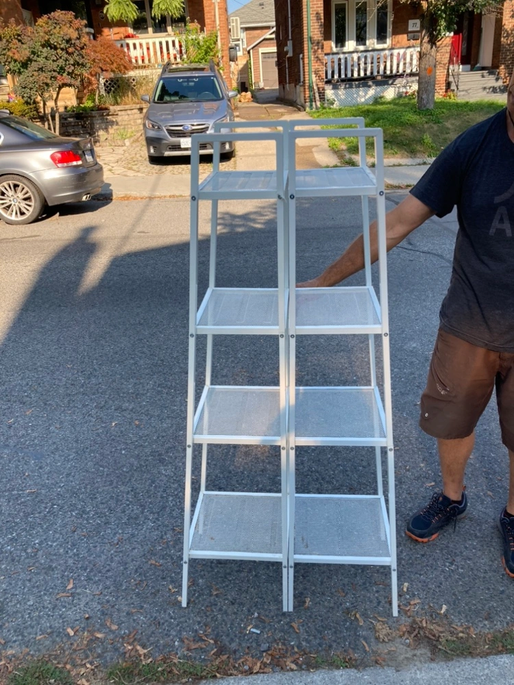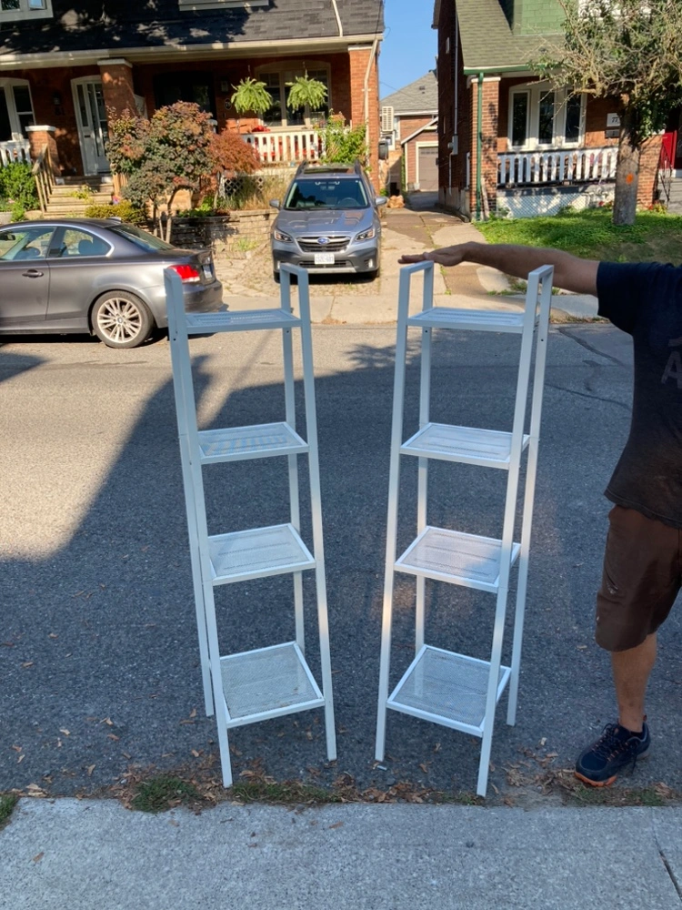 Two ikea white metal shelving units with four shelves. Great for plants 🪴 books 📚 or displaying your Knick knacks