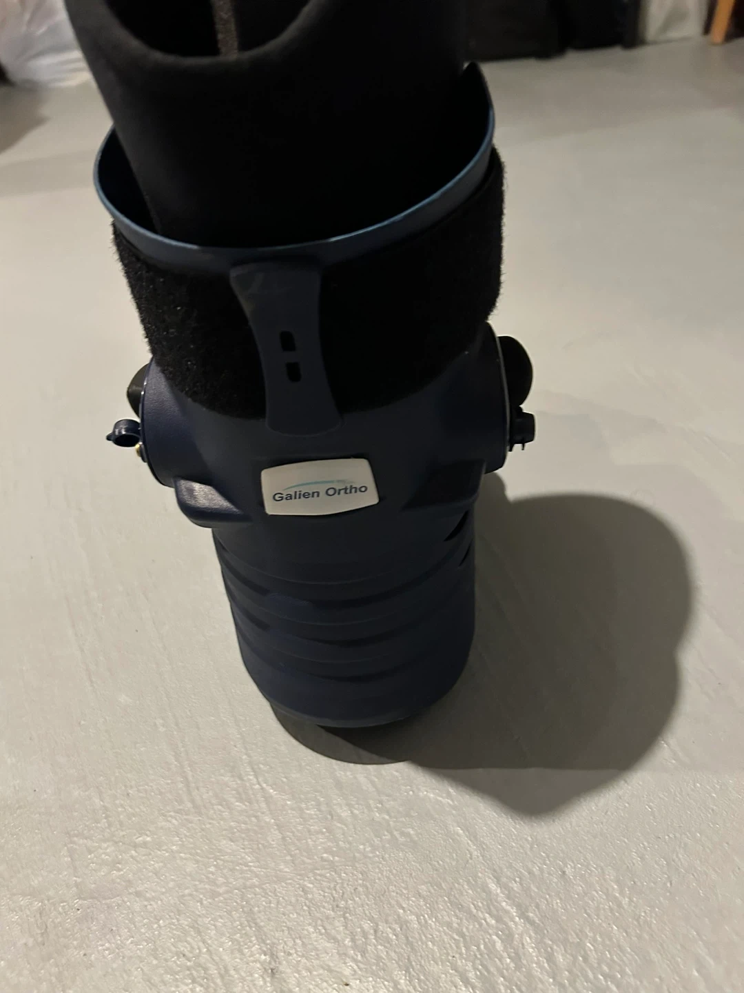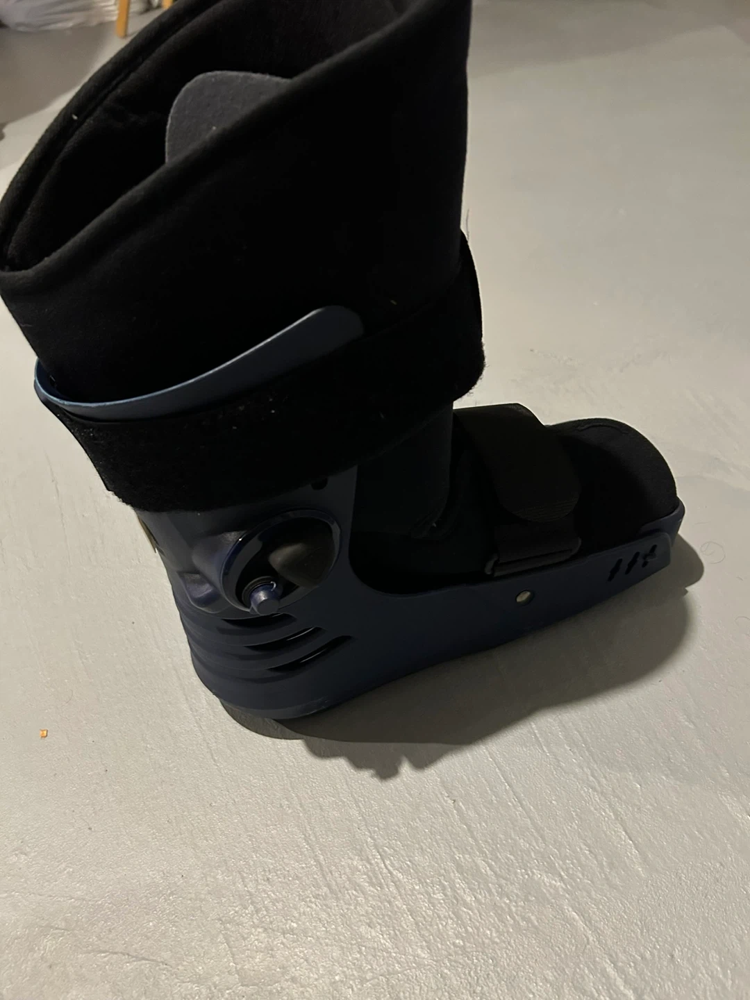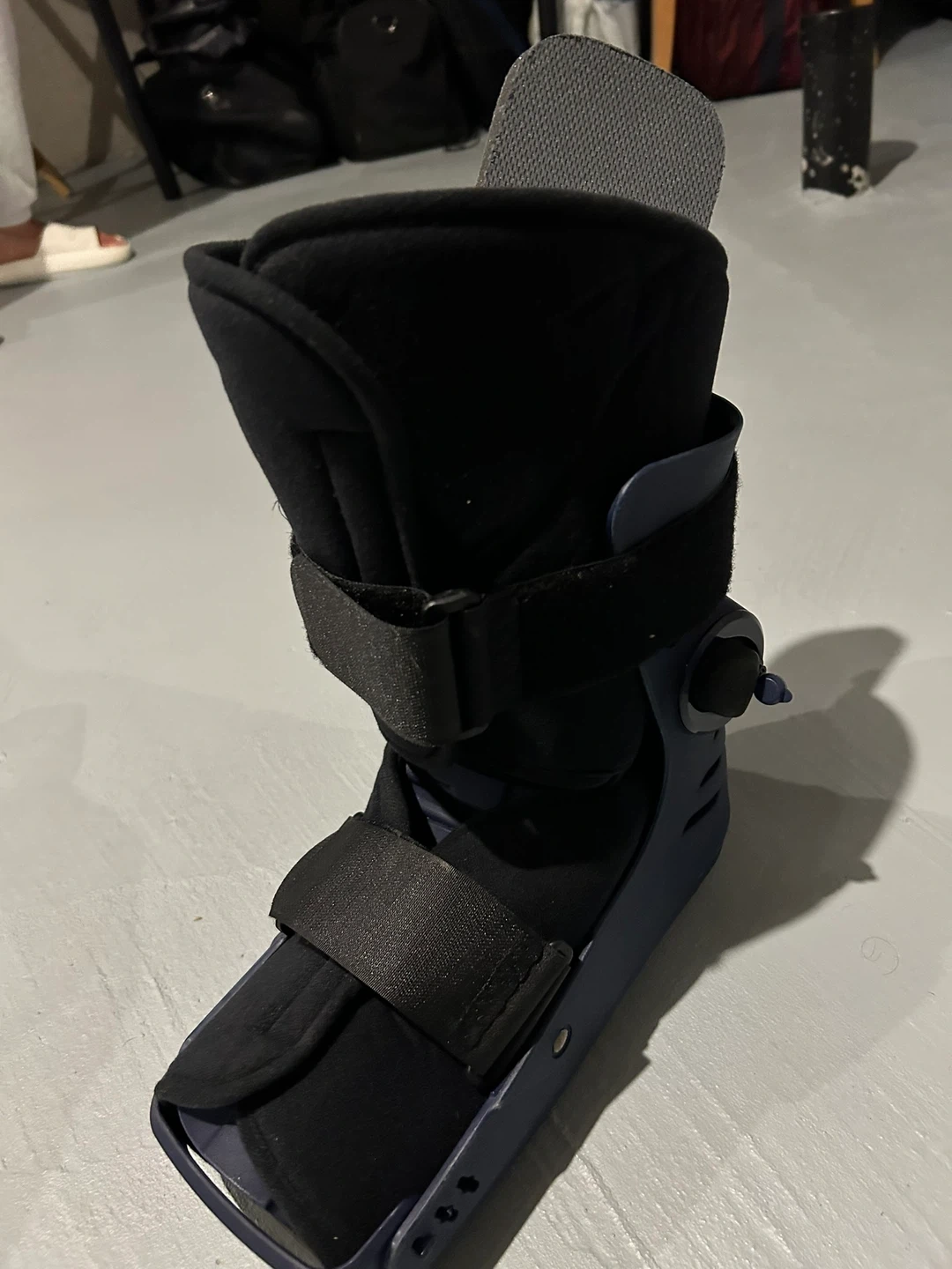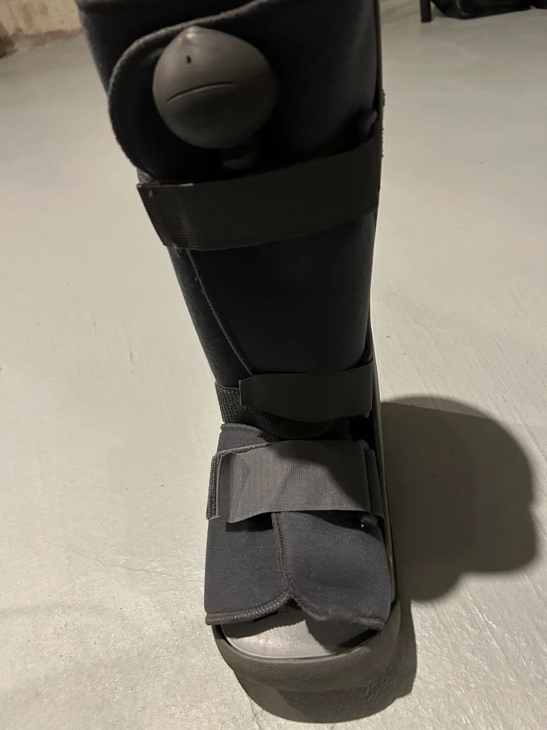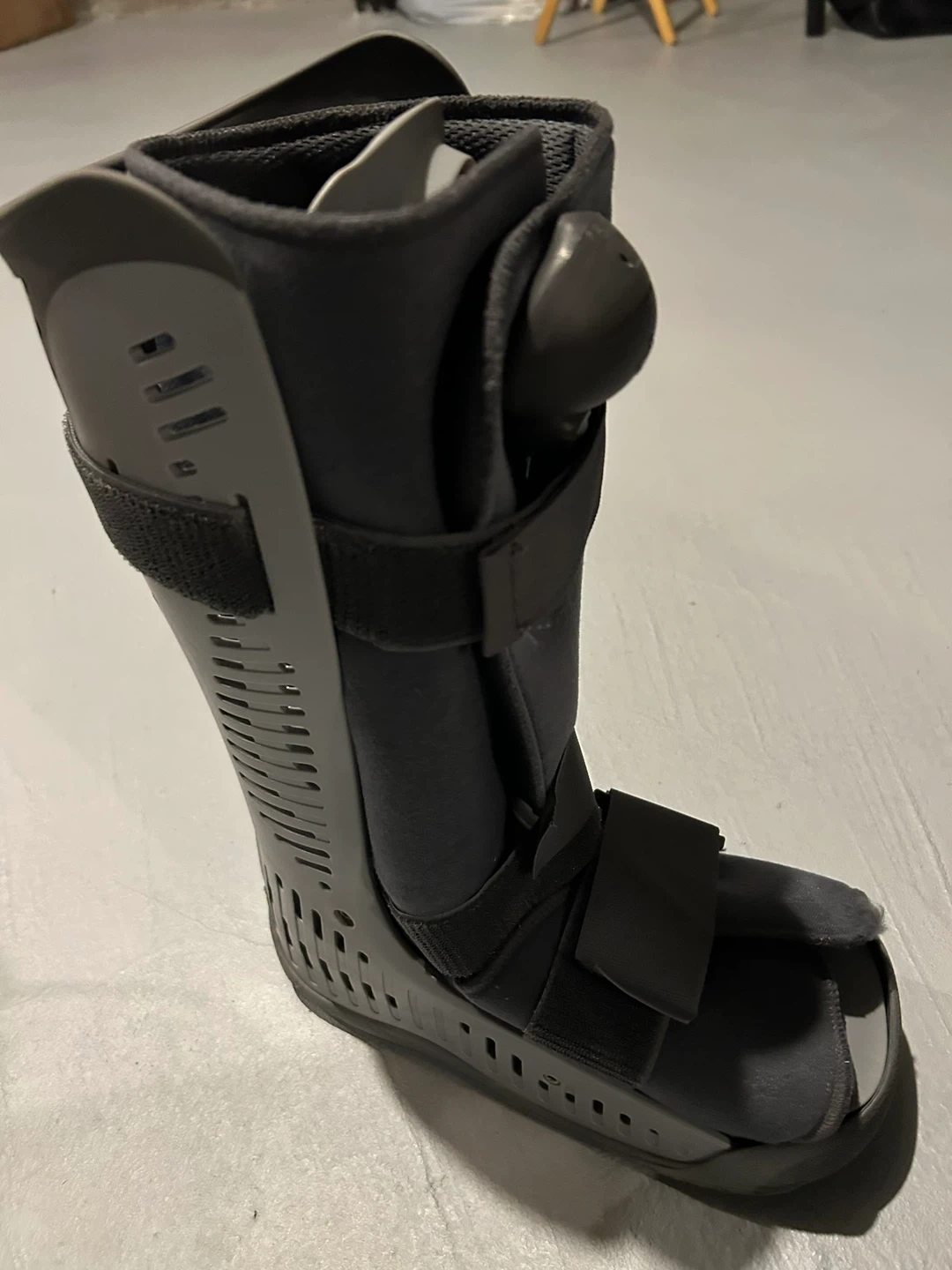 This is a walking boot designed for ankle and foot support. It features adjustable straps for a secure fit. Provides immobilization for recovery.