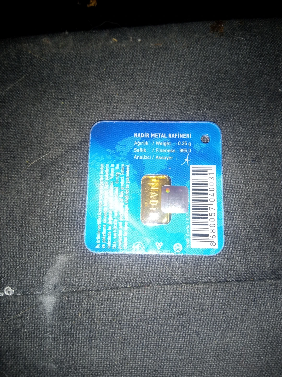 Nadir Goldcertificate bar weighing 0.25 grams. It's made of 995.0 fineness gold. Comes sealed in its original packaging. Great investment and even better starting price for a long term collector .