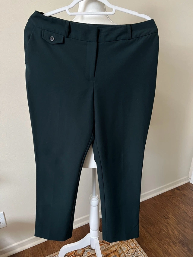 Suzy Shier dress pants in size 7/8, offering a sleek and professional look for any occasion. Specifications: * Brand: Suzy Shier * Size: 7/8 * Colour: Dark Green * Material: 96% Polyester, 4% Spandex