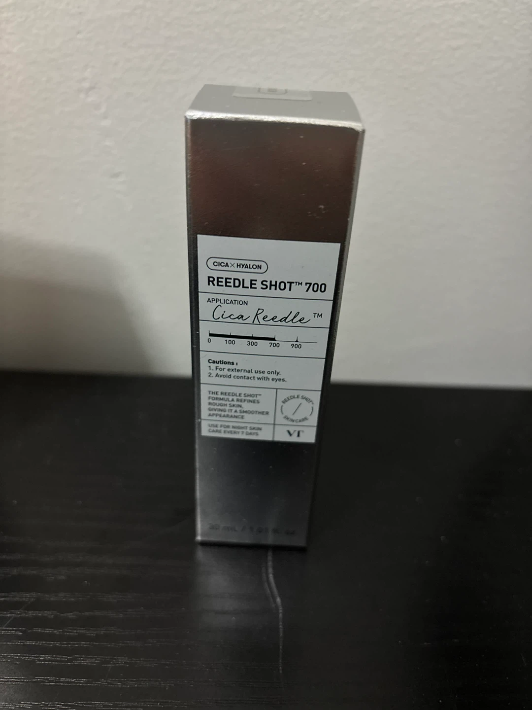 This is the VT Cosmetics REEDLE SHOT 700 serum with Cica x Hyalon. It's formulated to refine rough skin and give it a smoother appearance. Use for night skin care every 7 days.