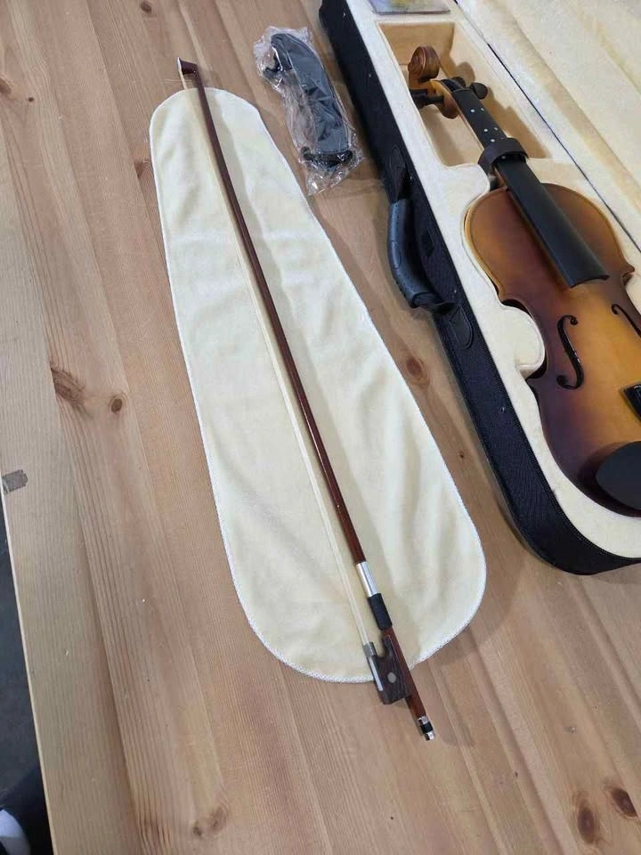 Brand new, full-size 4/4 acoustic violin made of solid wood. Comes with a hard case, bow, shoulder rest, and extra strings. Includes hygrometer, rosin, and a beginner textbook. Perfect for adults and beginner violin players. Great for practice, lessons, and performances. Ready for pickup today.