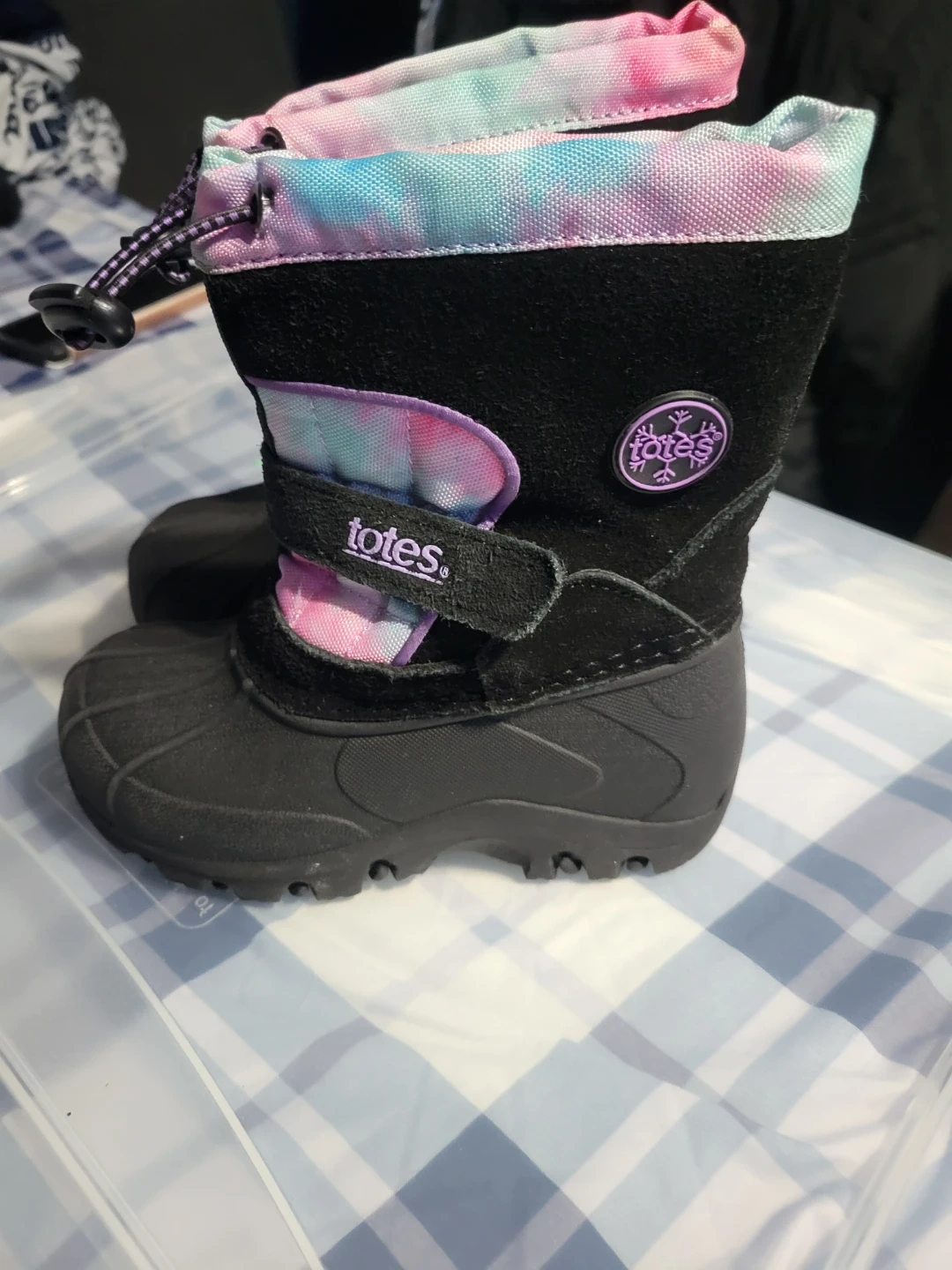 Buy & SellTotes Kids Boots Size 10Totes Kids Boots Size 10$8Totes kids winter boots. Black with a tie-dye cuff. Size 10. Water resistant.ConditionLike newAge6-8 yearsWHERE TO MEET11766View MapSELLERverifiedCanoahMount Sinai600 reviews0 chats·0 favorites·2 viewsSEND CHAT TO SELLERHi Canoah! I’m interested in your listing.Hi Canoah! I’m interested in your listing.Get the Karrot app to chatSign In to chat