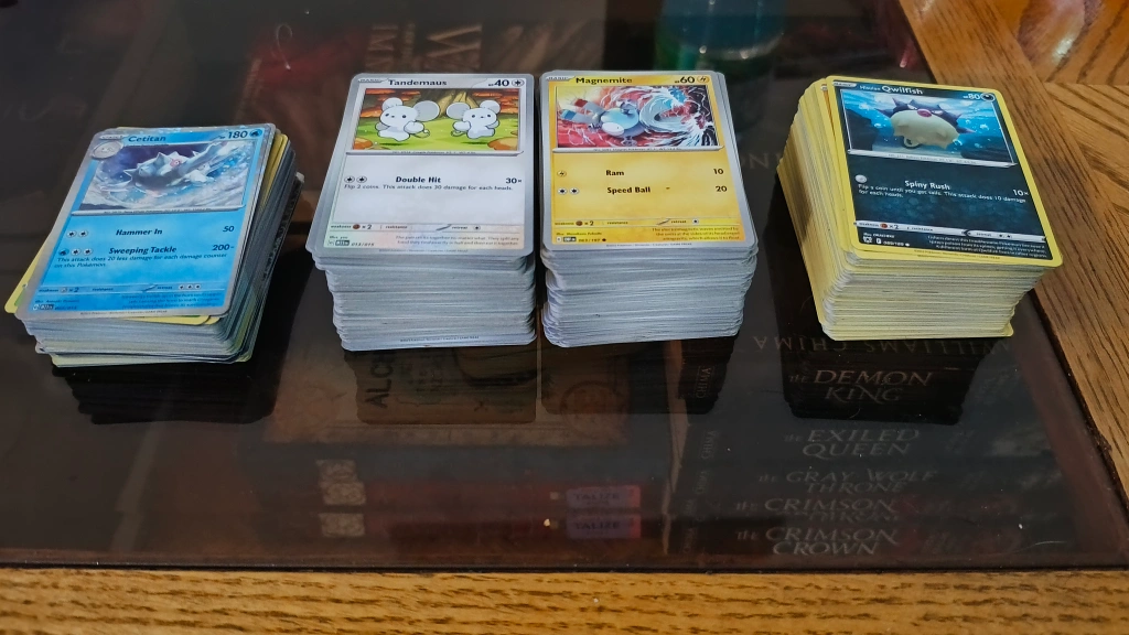Selling a bundle of Pokemon cards! Includes a variety of cards, including Tandemaus, Magnemite, Cetitan, and Qwilfish. Great for collectors or players looking to expand their collection.