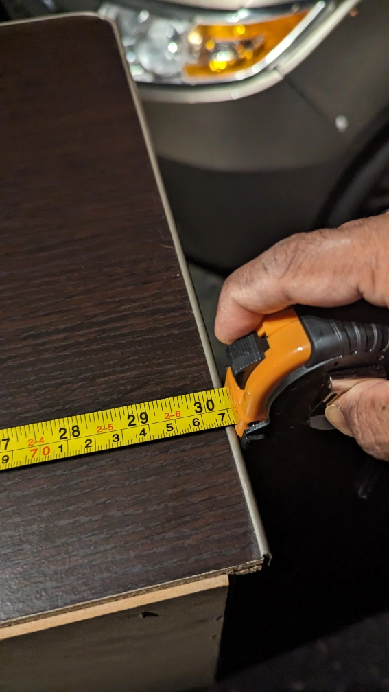 Selling a brown 5-drawer dresser. It's in good condition and measures approximately 30 inches wide and 16 inches deep. Perfect for extra storage!