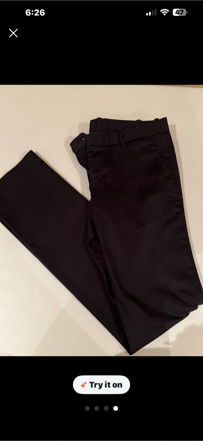 Selling a pair of black pants from Uniqlo in size 4. They're made of 95% cotton and 5% spandex. Perfect for everyday wear!