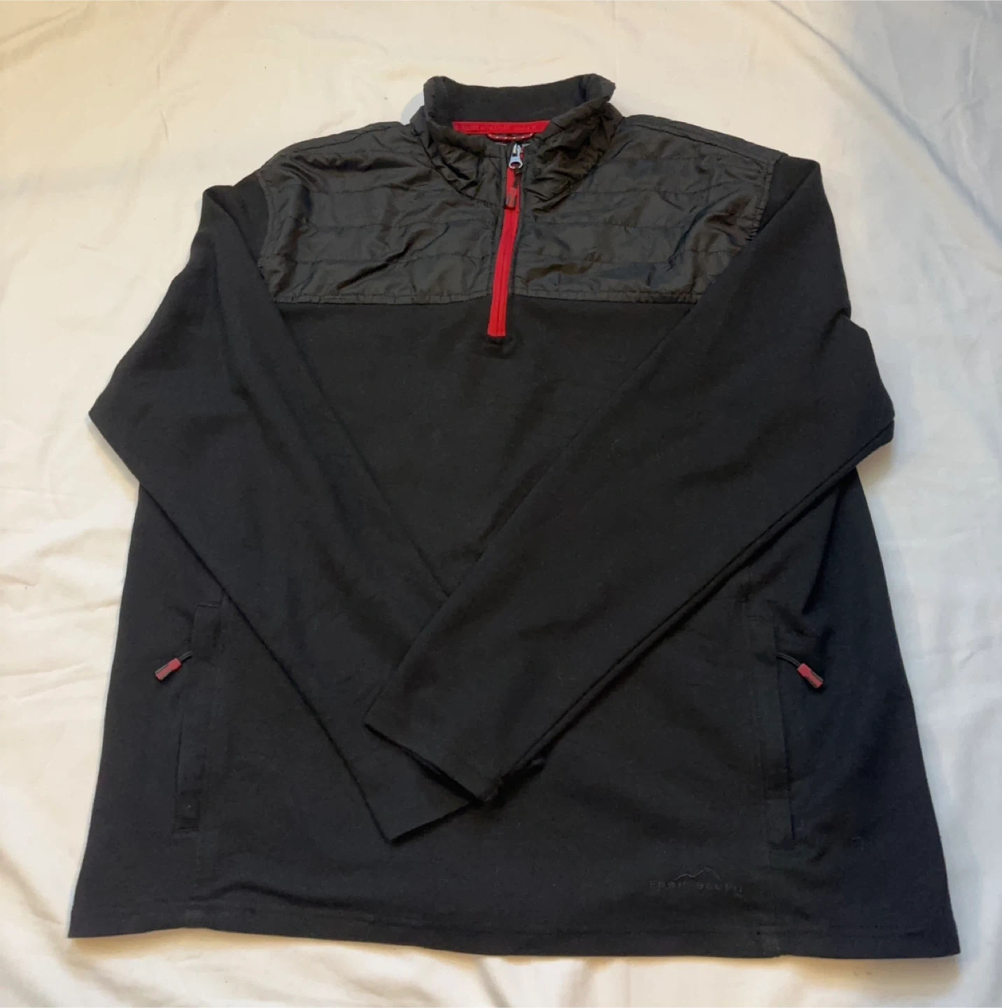 Eddie Bauer Men’s Mixed Media ¼ Zip Pullover. $15 cash, porch pick up Kennedy and Eglinton.